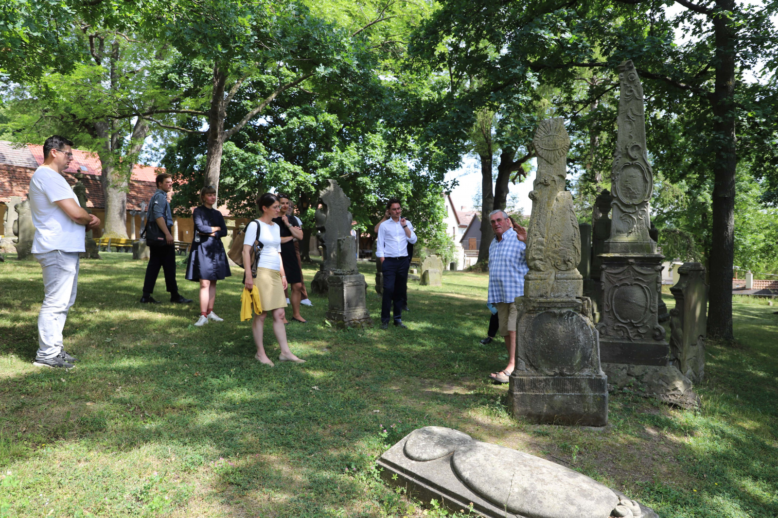 Anschließend ging es zum beeindruckenden „Camposanto“ in Buttstädt, einer der wenigen noch existierenden Friedhöfe der Renaissance in Mitteldeutschland. Das historische Gebäudeensemble wird als wichtiges Zeugnis der Bau- und Begräbniskultur seit vielen Jahren erfolgreich vom ansässigen Förderverein erhalten und gepflegt. Im Jahr 2021 war die Anlage dank dieses Engagements Außenstandort der BUGA.