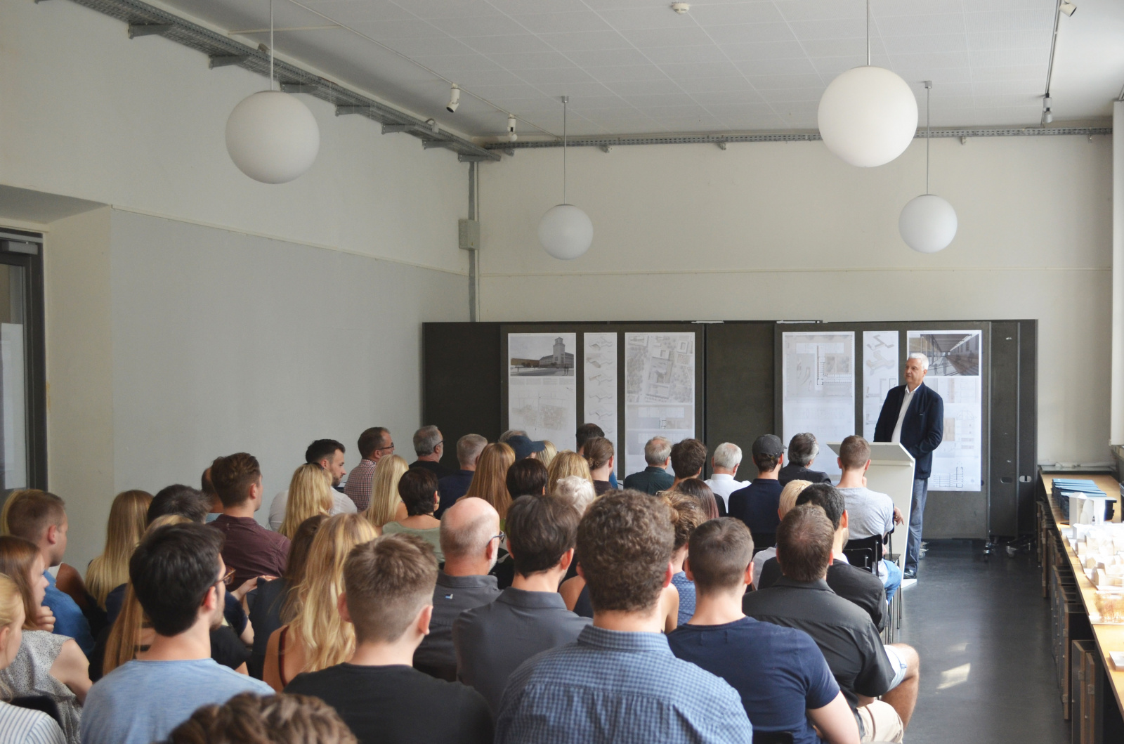 Mut und Konsequenz bei der Vertretung des eigenen Entwurfs wünschte den angehenden Architektinnen und Architekten auch Dekan Prof. Michael Mann: „Architektur ohne das Rückgrat der Haltung kann belanglos sein. Deshalb ist es wichtig, dass Haltung entsteht und wächst.“