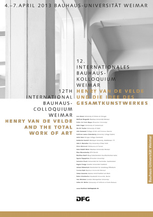 Wenige Tage nach der Ausstellungseröffnung beginnt das 12. Internationale Bauhaus-Kolloquium. Experten und Nachwuchswissenschaftler kommen vom 4. bis 7. April 2013 für Vorträge und Workshops an der Bauhaus-Universität Weimar zusammen. Die Konferenzteilnehmerinnen und -teilnehmer befassen sich mit Van de Veldes Idee des Gesamtkunstwerkes und diskutieren in diesem Kontext seine Bedeutung für die zeitgenössische Architektur.