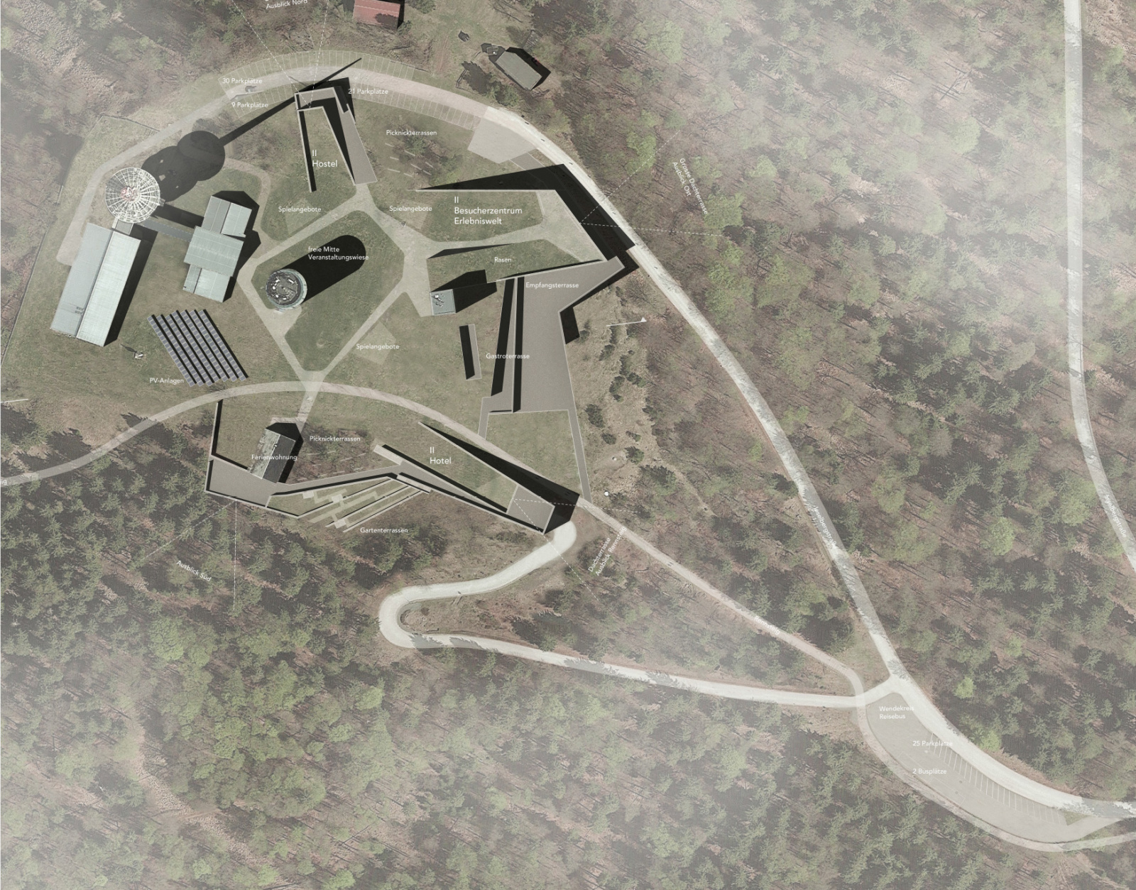 Geplant sind unter anderem eine Erlebniswelt mit Ausstellungs- und Veranstaltungsbereichen sowie die Neugestaltung der öffentlichen Freianlagen (Realisierungsteil). Im Ideenteil war ein baulich-räumliches Konzept für das Plateau zu entwickeln, welches sowohl die vorhandenen Angebote im Bereich Besucherinformation, Gastronomie und Beherbergung als auch die technischen Anlagen integriert und Entwicklungsperspektiven aufzeigt.