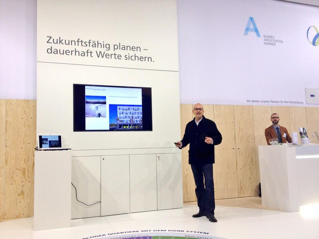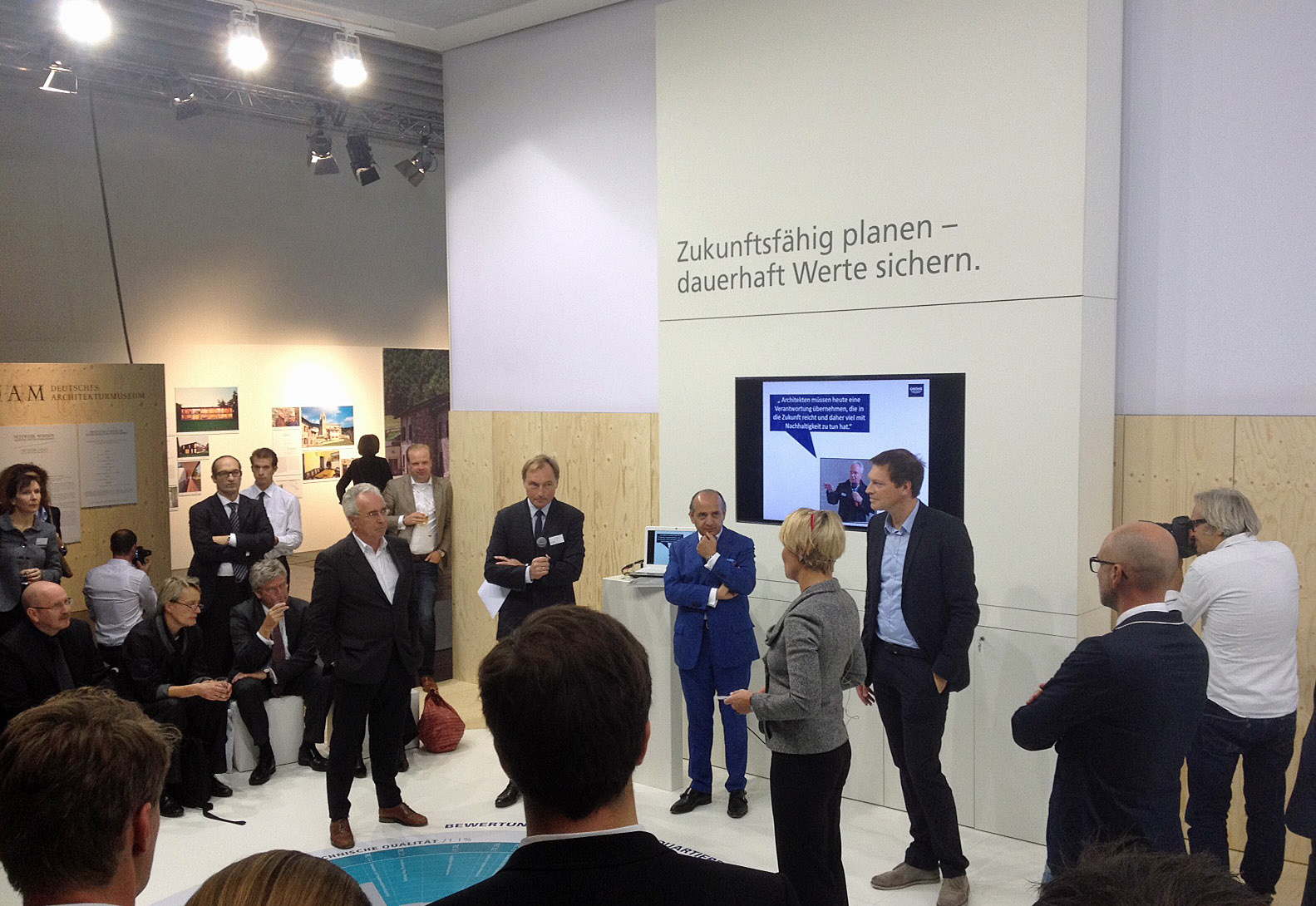 Bundesarchitektenkammer (BAK) und Deutsche Gesellschaft für Nachhaltiges Bauen (DGNB) waren zum sechsten Mal mit einem Gemeinschaftsstand auf der EXPO REAL vertreten. Unter dem Motto „intelligent urbanization“ hatten BAK und DGNB für den zweiten Messetag, den 8. Oktober, fünf Diskussionsrunden im Rahmen des Planning & Partnerships Forums der Messe zusammengestellt.