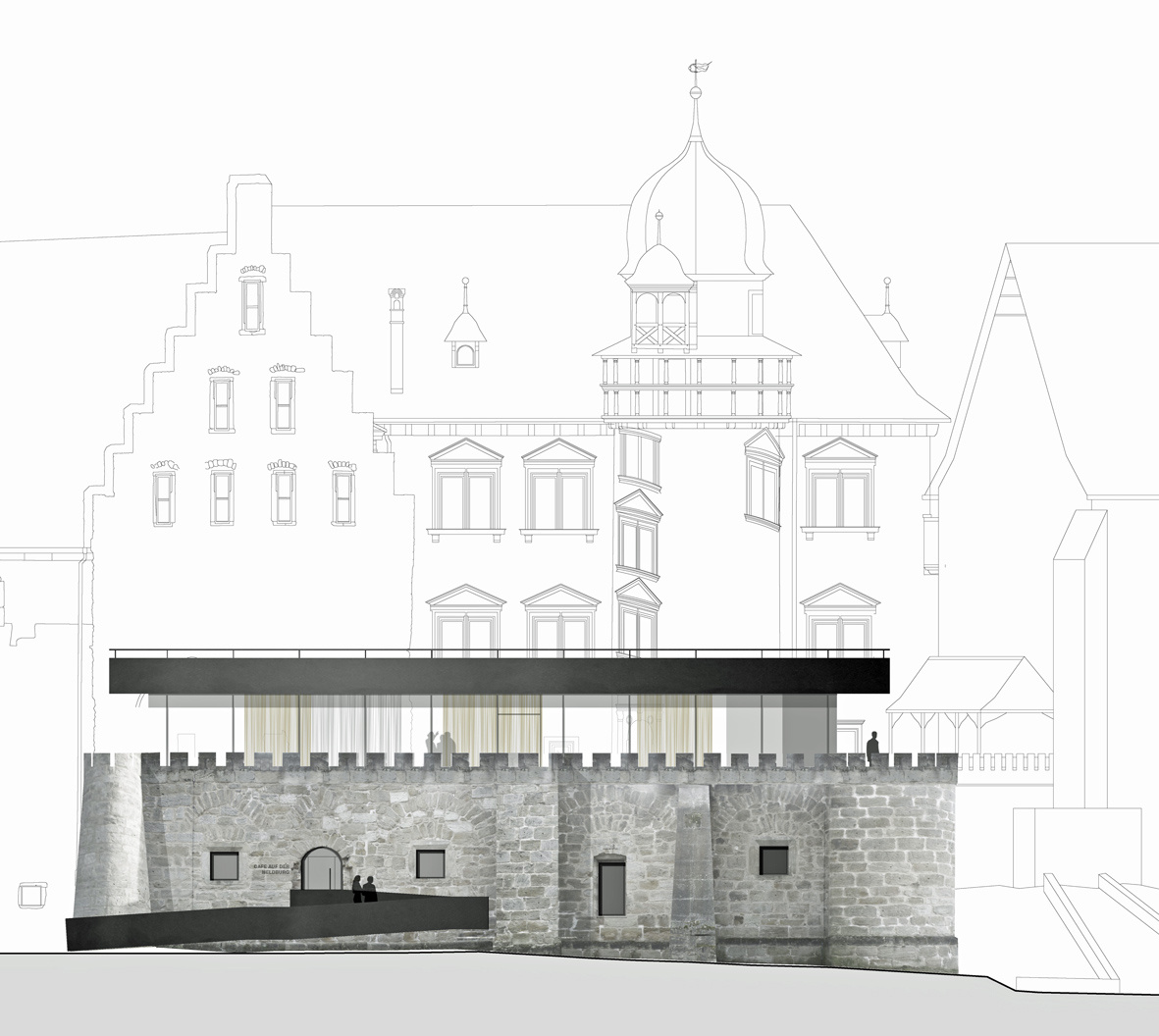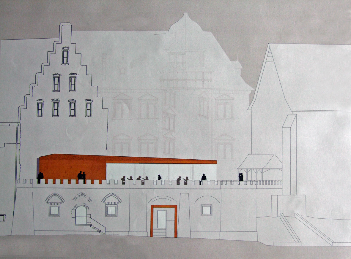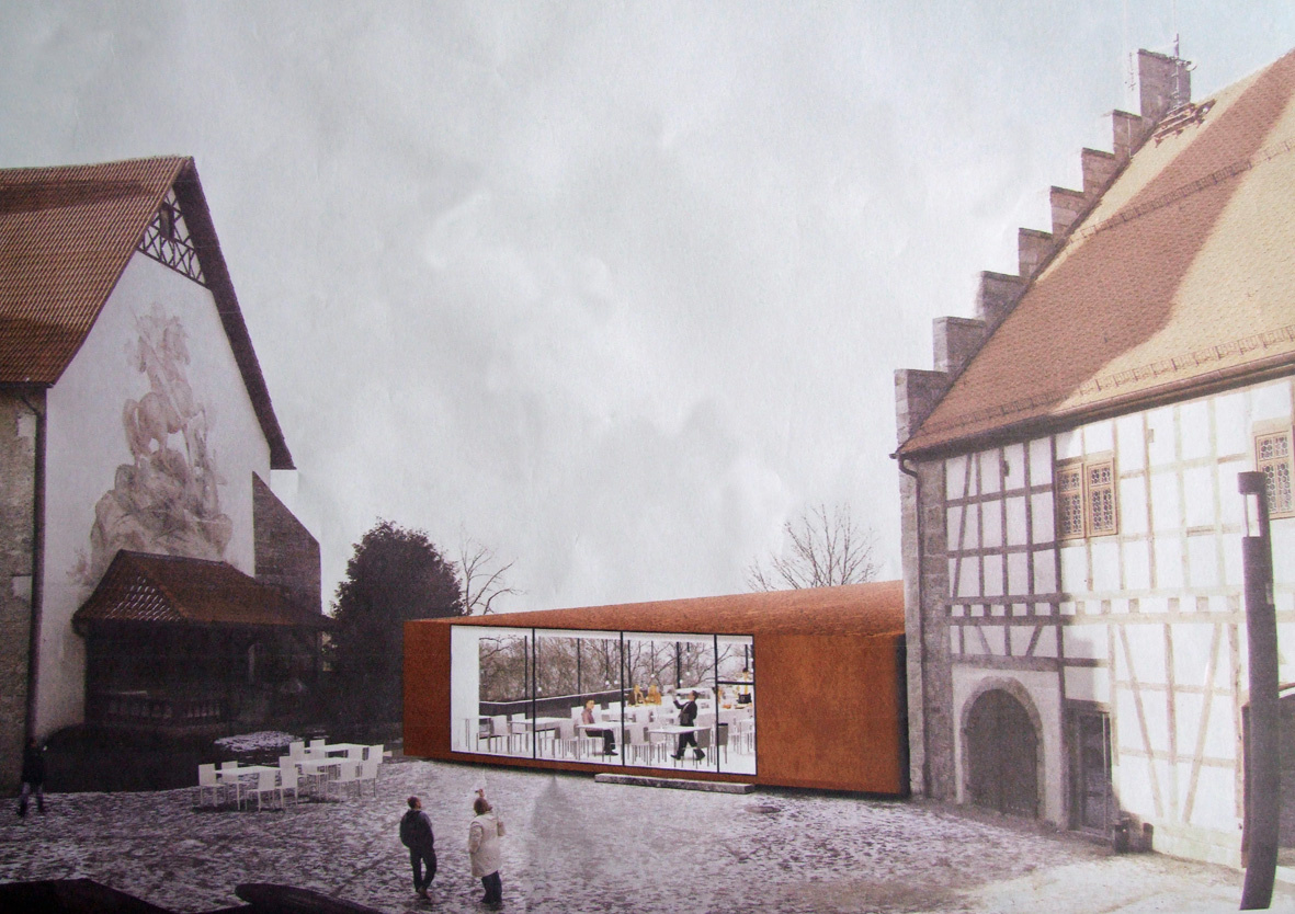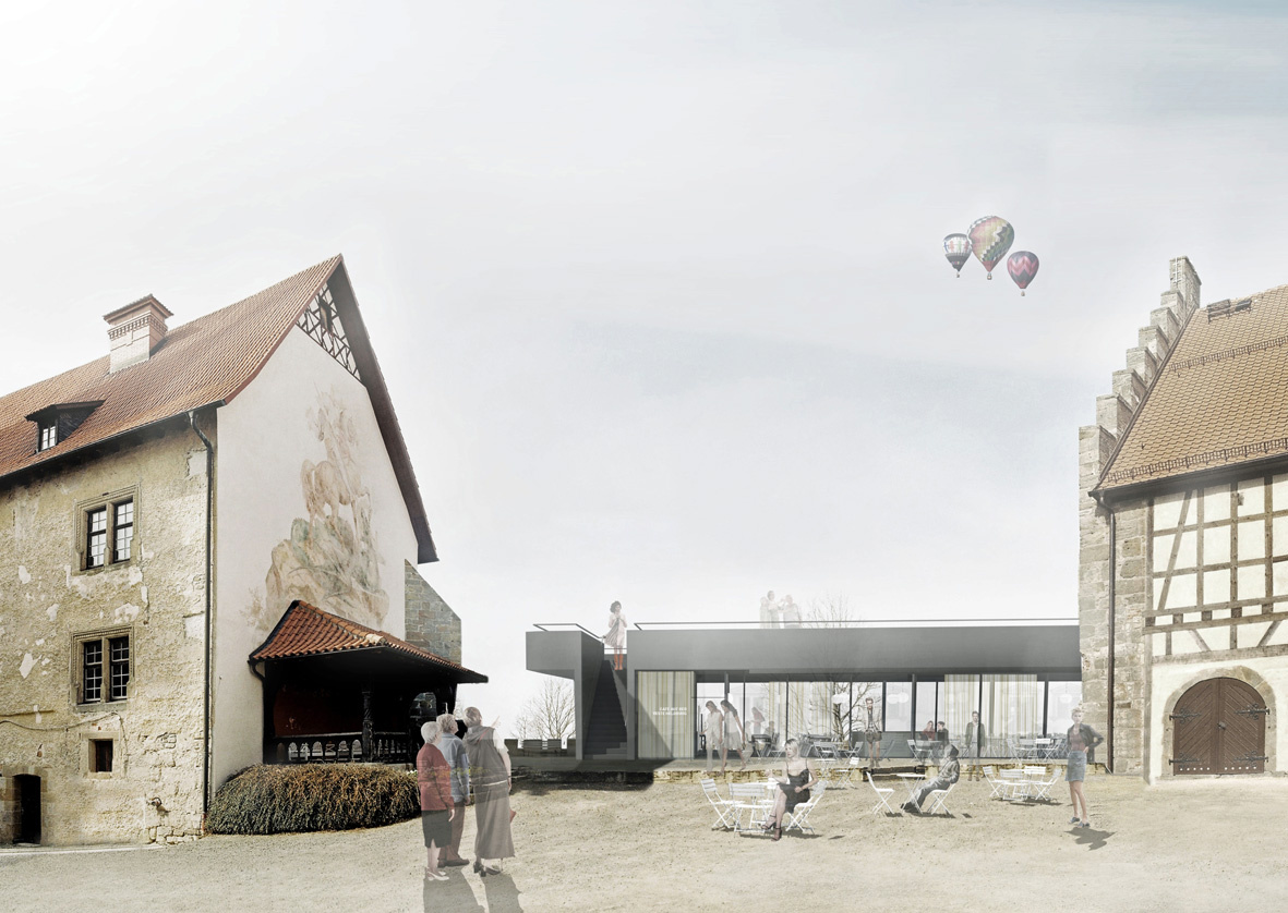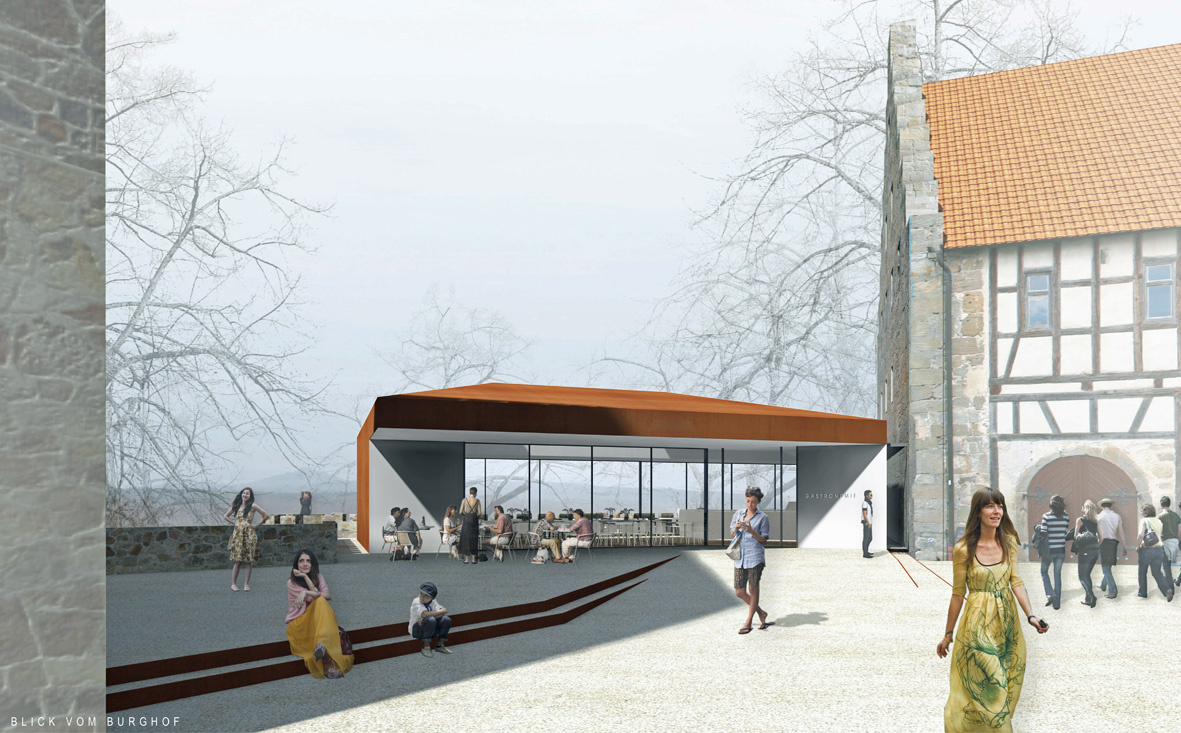 Das heutige Bild der Burganlage prägen Um- und Erweiterungsbauten aus verschiedenen Jahrhunderten. Bisher fehlt eine gastronomische Einrichtung. Geplant ist die Errichtung eines eingeschossigen Aufbaus für ein Café / Restaurant auf der Terrasse im Bereich des 1838 abgetragenen Küchenbaus. Auch die unter der Terrasse liegenden Gewölbekeller sollen in die gastronomische Nutzung einbezogen werden.