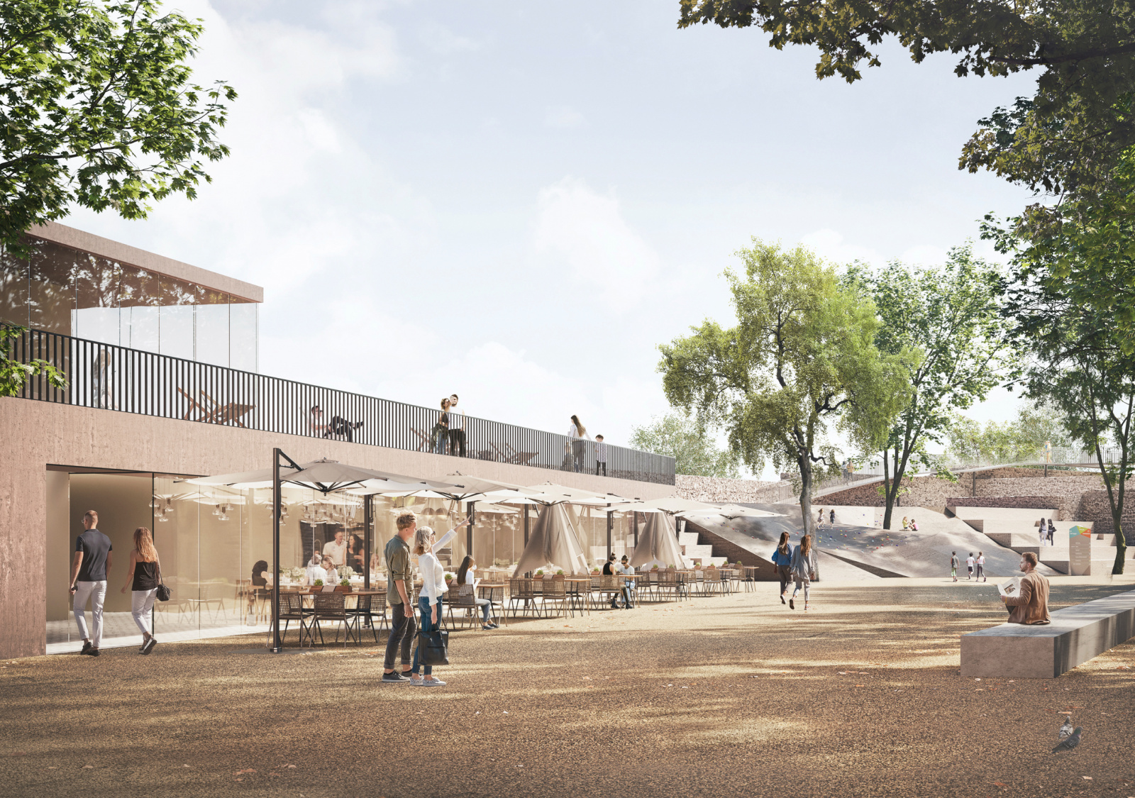 „Neues Bauen in einer mit Geschichte aufgeladenen, monumentalen und mehrfach überformten Umgebung: Dieser Entwurf überzeugt durch gezieltes Freilegen und geschickt platzierte bauliche Interventionen, gefasst von großzügigen Freianlagen. Dabei rückt der Innenbereich des Plateaus zwischen den beiden Polen Barbarossaturm und Kaiser-Wilhelm-Denkmal in den Fokus.