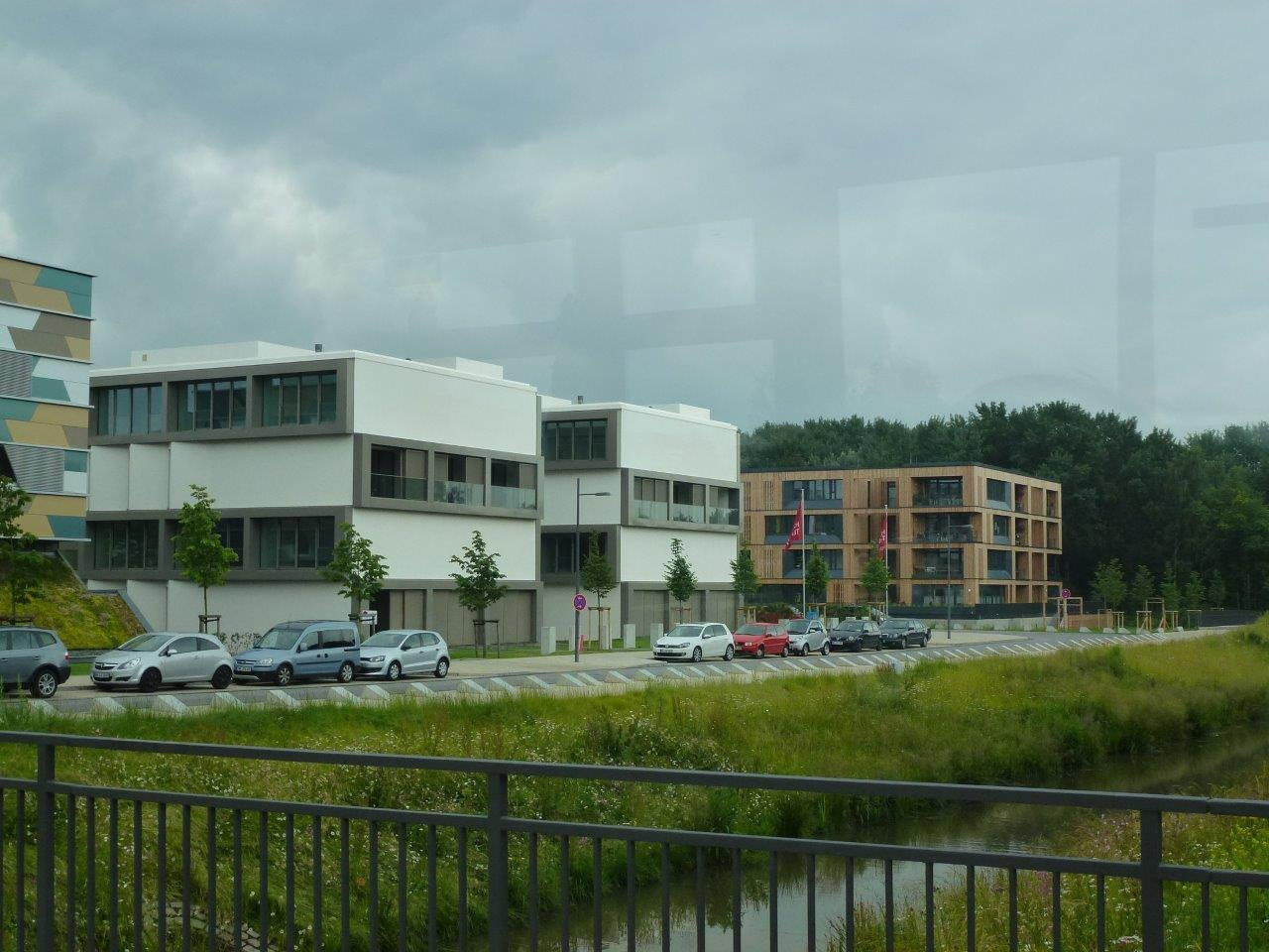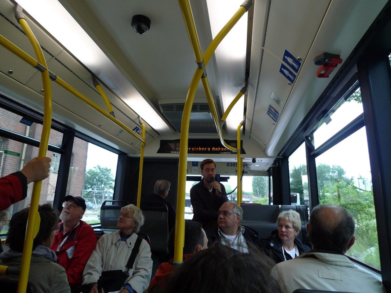 Unser Programm gliederte sich in eine 40-minütige Tour mit dem IBA-Bus zum Kennenlernen ausgewählter Projekte der IBA, eine spannende zweieinhalbstündige Städtebau- und Architektour mit M.Sc. Urban Design Kai Michael Dietrich der IBA und den abschließenden individuellen Besuch des mächtigen Energiebunkers sowie des schwimmenden IBA-Docks im Müggelheimer Hafen.