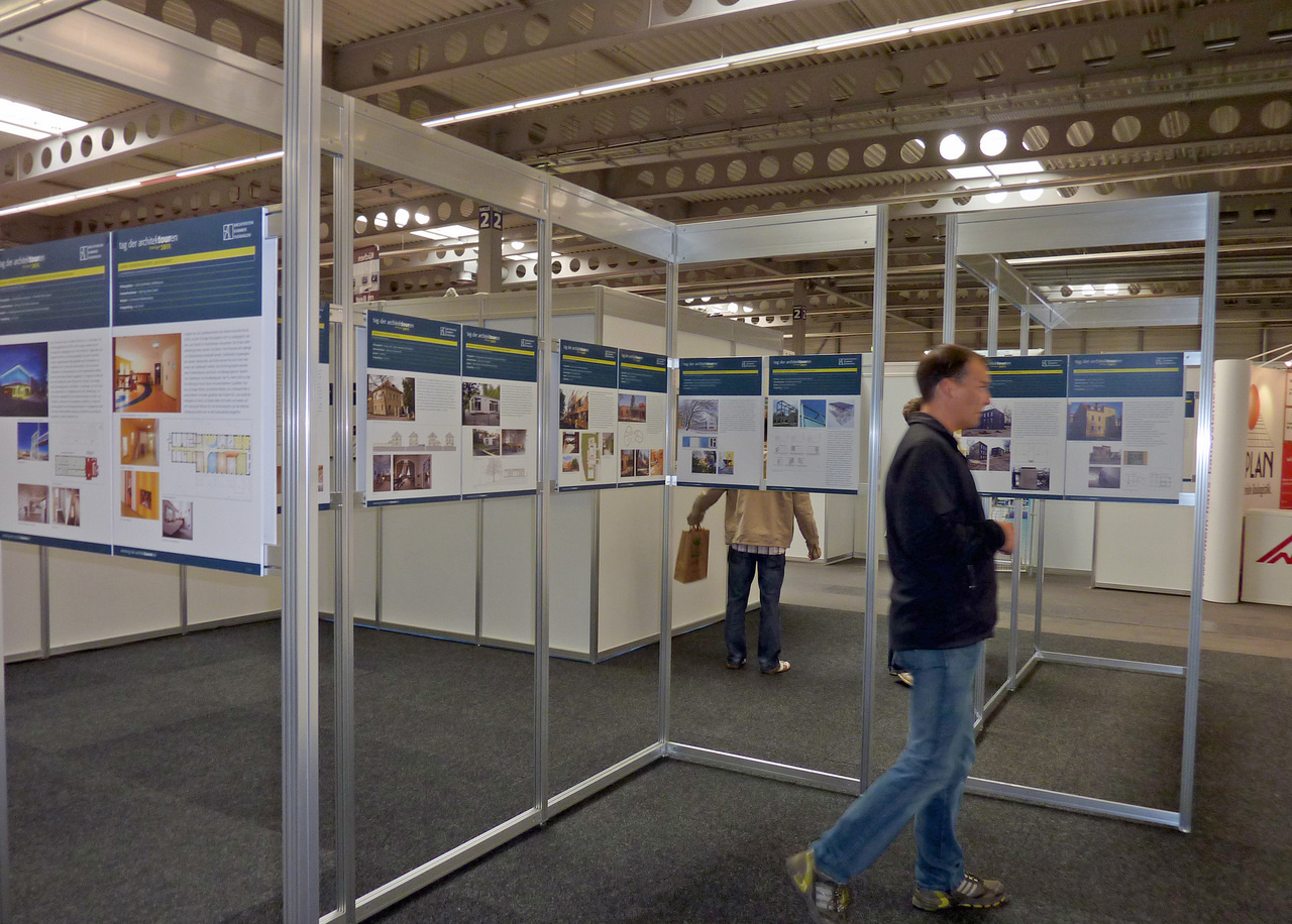 Die Architektenkammer Thüringen präsentierte in der Messehalle auf 80 Tafeln die Ausstellung „Neue Architektur in Thüringen – tag der architektouren 2011“.