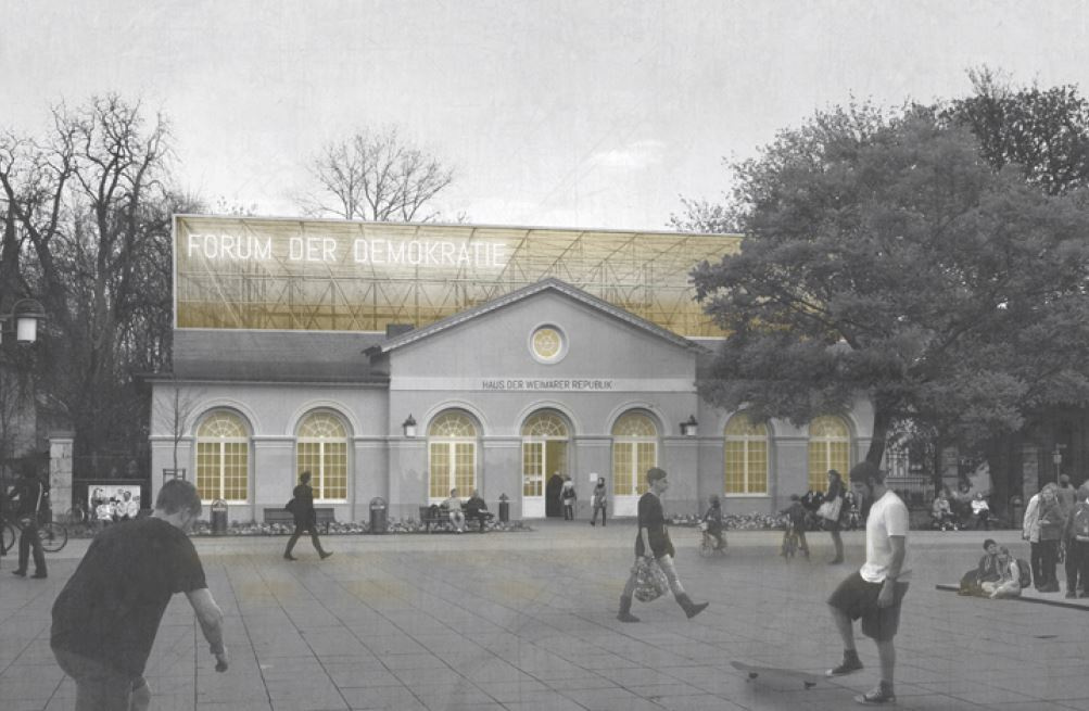 In Zusammenarbeit mit der Bauhaus-Universität Weimar werden die Wettbewerbsentwürfe zum „Haus der Weimarer Republik“ im Hauptgebäude der Universität, Geschwister-Scholl-Str. 8, nochmals präsentiert: