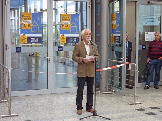 Dass die Messe Erfurt die Präsenz der Architektenkammer schätzt, zeigte auch der Freitagmorgen, als Michael Hardt zusammen mit Geschäftsführer Johann Fuchsgruber die „Haus+Technik“ eröffnen durfte. Das Plädoyer des Vizepräsidenten der Architektenkammer: „Sparen Sie nicht am, sondern mit dem Architekten!“