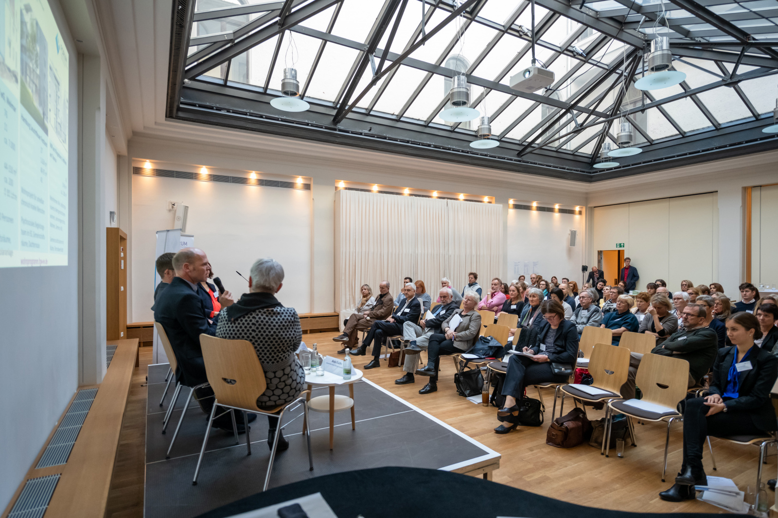 Den Einführungsvortrag hielt der Parlamentarische Staatssekretär im Bundesministerium für Familie, Senioren, Frauen und Jugend (BMFSFJ), Stefan Zierke, der bereits am Vormittag mit allen Teilnehmern die Gelegenheit zur Besichtigung des Weimarer Wohnprojektes „Ro70“ in der Eduard-Rosenthal-Straße 70 wahrgenommen hatte (Website: www.ro70-weimar.de).