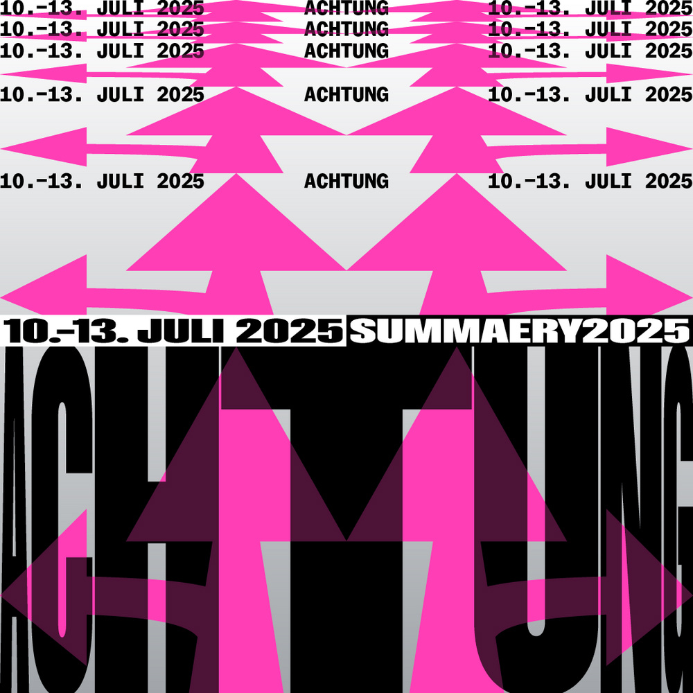 »Die Erhaltung dieser Werte erfordert stets Arbeit und Anstrengung – und wird immer eine Baustelle bleiben«, sagt Prof. Burkhart von Scheven, der das Motto mit Prof. Markus Weisbeck entwickelt hat. »Unsere summaery zeigt, wie Wissenschaft, Kunst und Forschung kritisch, kreativ und zukunftsgewandt daran mitarbeiten.« Visuell setzt das Motto klare Akzente, die gestalterisch der Welt der Straßen-Baustellen entlehnt sind: Leitsystem-Ästhetik, signalstarkes Pink, übergroße Pfeile und der verzerrte Schriftzug »ACHTUNG« ziehen sich durch alle Medien, von Plakat bis Website. Das studentische Team Mona Kerntke und Leonard Behre hat das Erscheinungsbild entwickelt. »In diesem Sinne laden wir zu einer Jahresausstellung als große Baustelle in ganz Weimar und darüber hinaus ein. Eine Baustelle, auf der fast alles erlaubt und fast nichts verboten ist: ACHTUNG – Betreten erwünscht«, so Burkhart von Scheven.