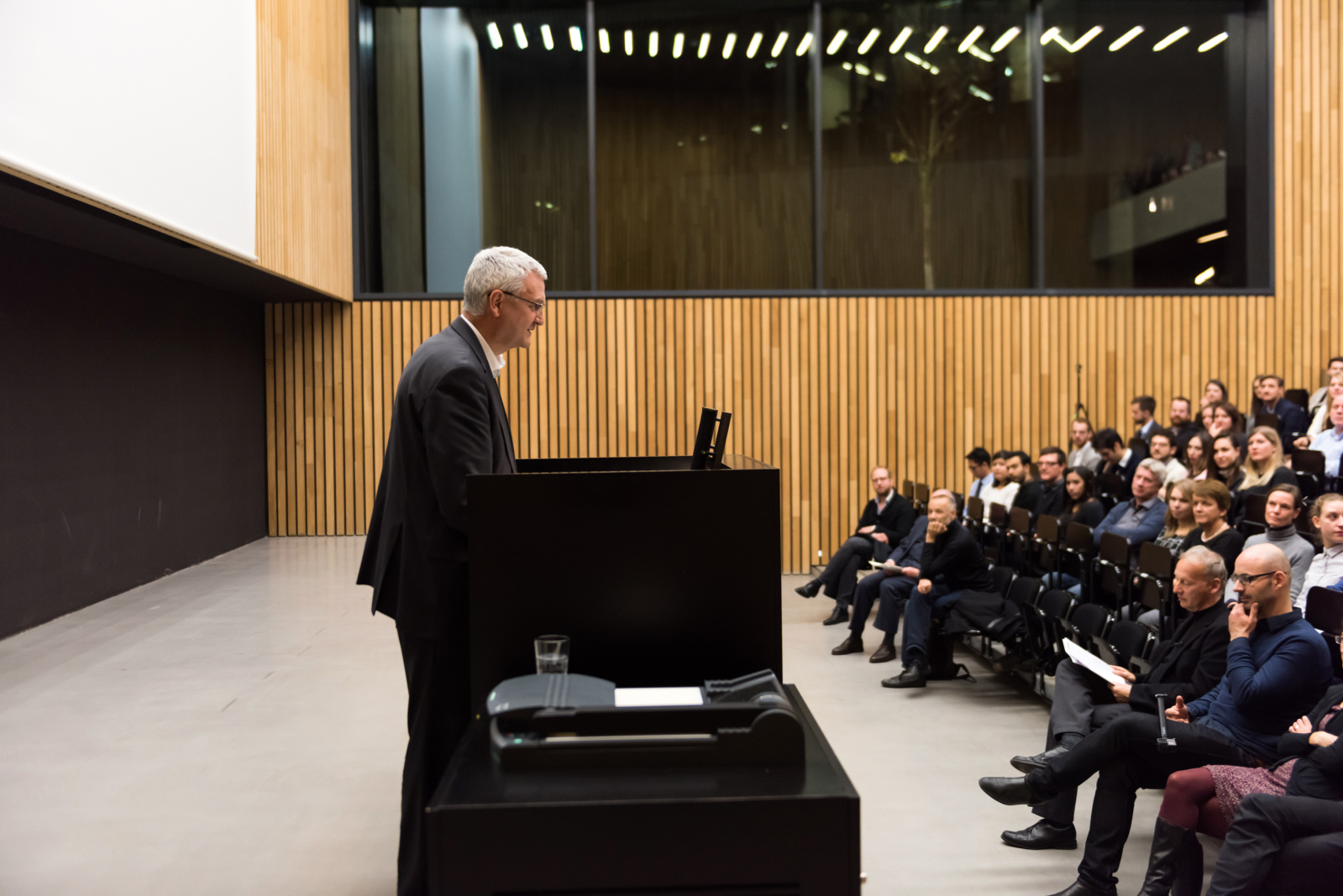 Die Zukunft des Berufsstandes sind die Absolventinnen und Absolventen von heute. Knapp 300 von ihnen verzeichnet die Fakultät Architektur und Urbanistik an der Bauhaus-Universität Weimar im aktuellen Abschlussjahrgang 2015/2016. Etwa die Hälfte kam am 11. November zur feierlichen Graduierung ins Audimax in der Universitätsbibliothek. Zu den Gratulanten gehörte neben Dekan Prof. Bernd Rudolf auch Dr. Hans-Gerd Schmidt. Der Präsident der Architektenkammer Thüringen wünschte den Anwesenden nicht nur alles Gute für den weiteren Berufsweg, vielmehr betonte er die Notwendigkeit, sich gerade als Berufsanfänger mit den Aufgaben des Berufsstandes vertraut zu machen und eine Haltung dazu einzunehmen.