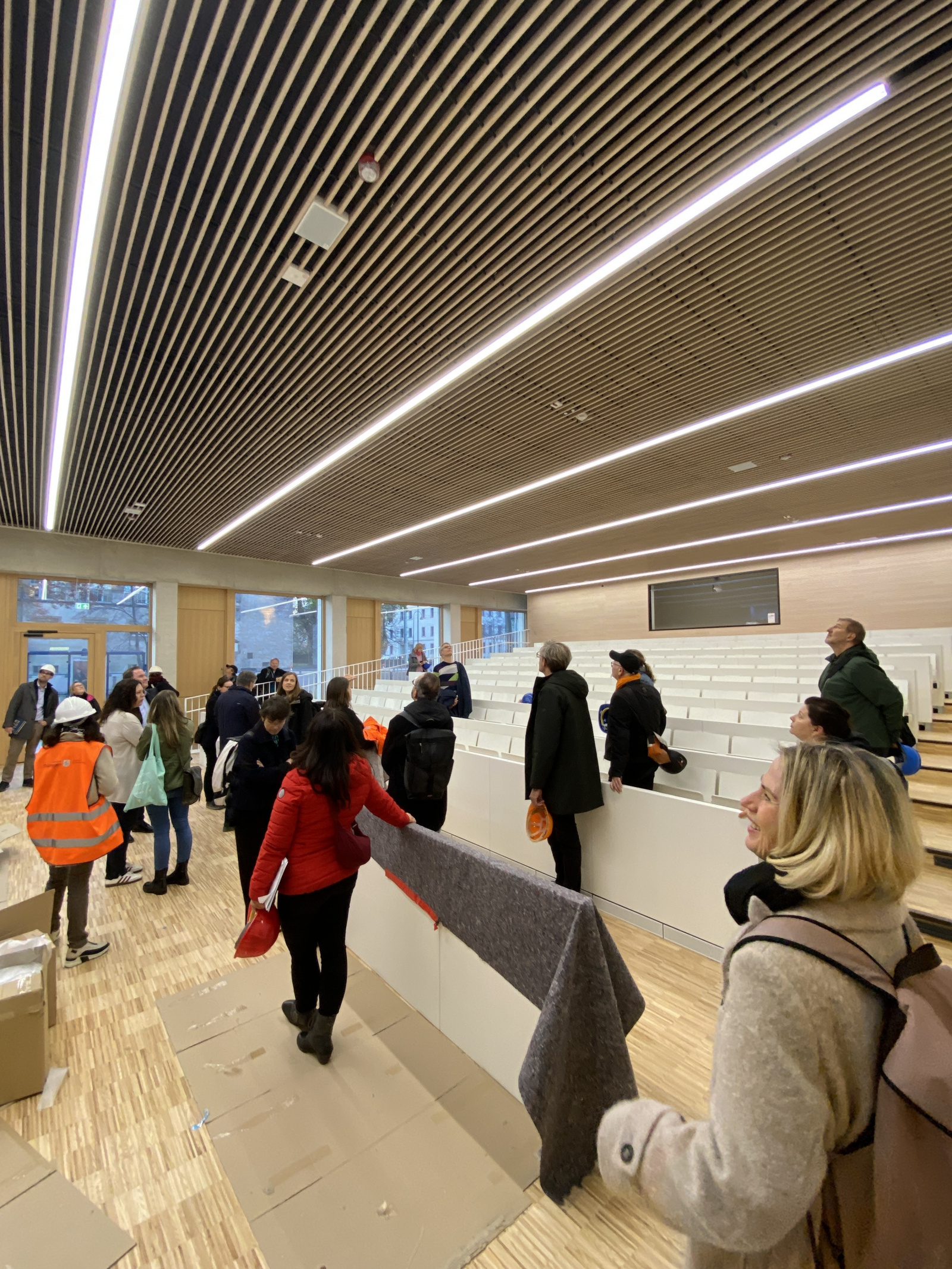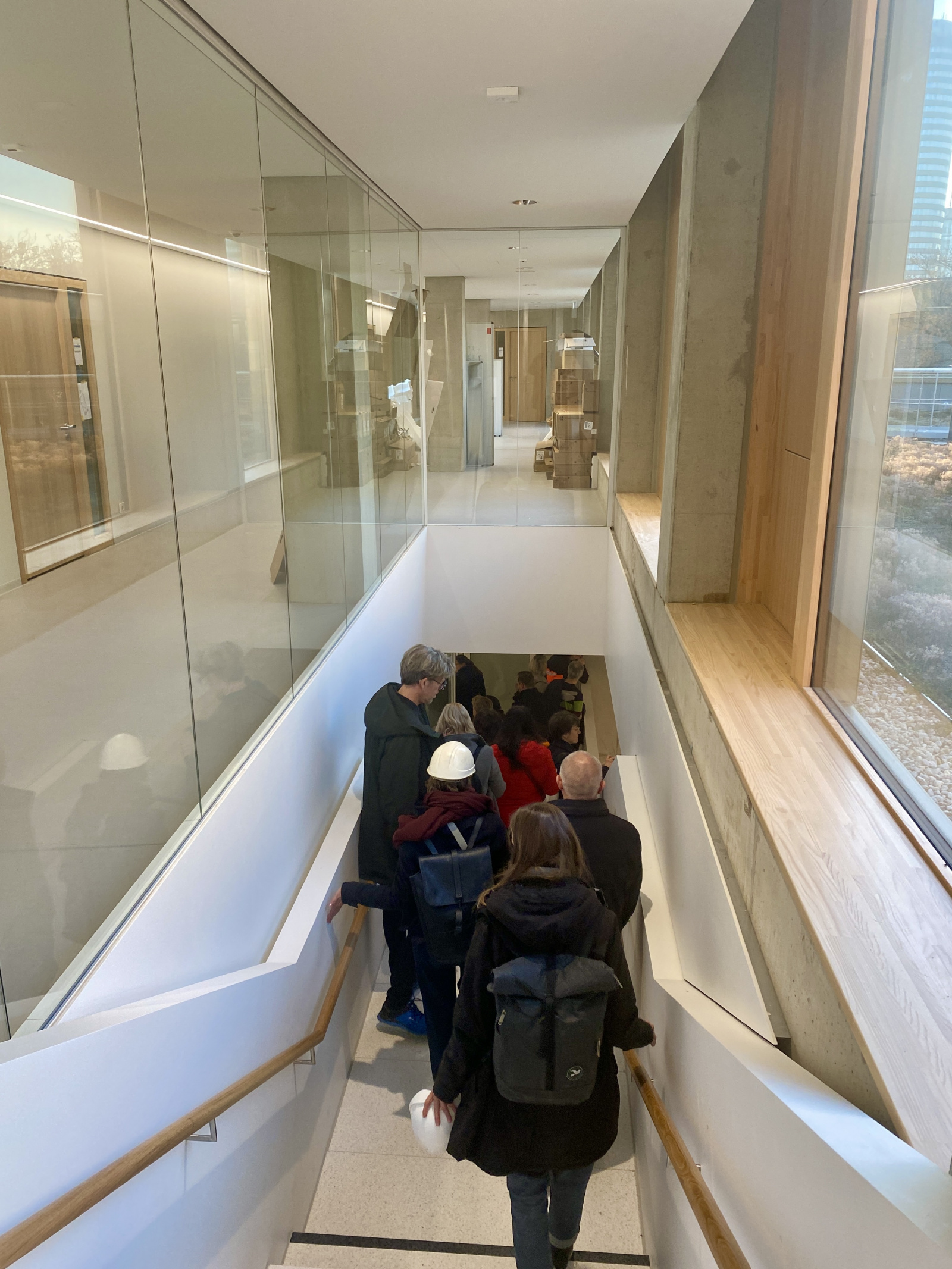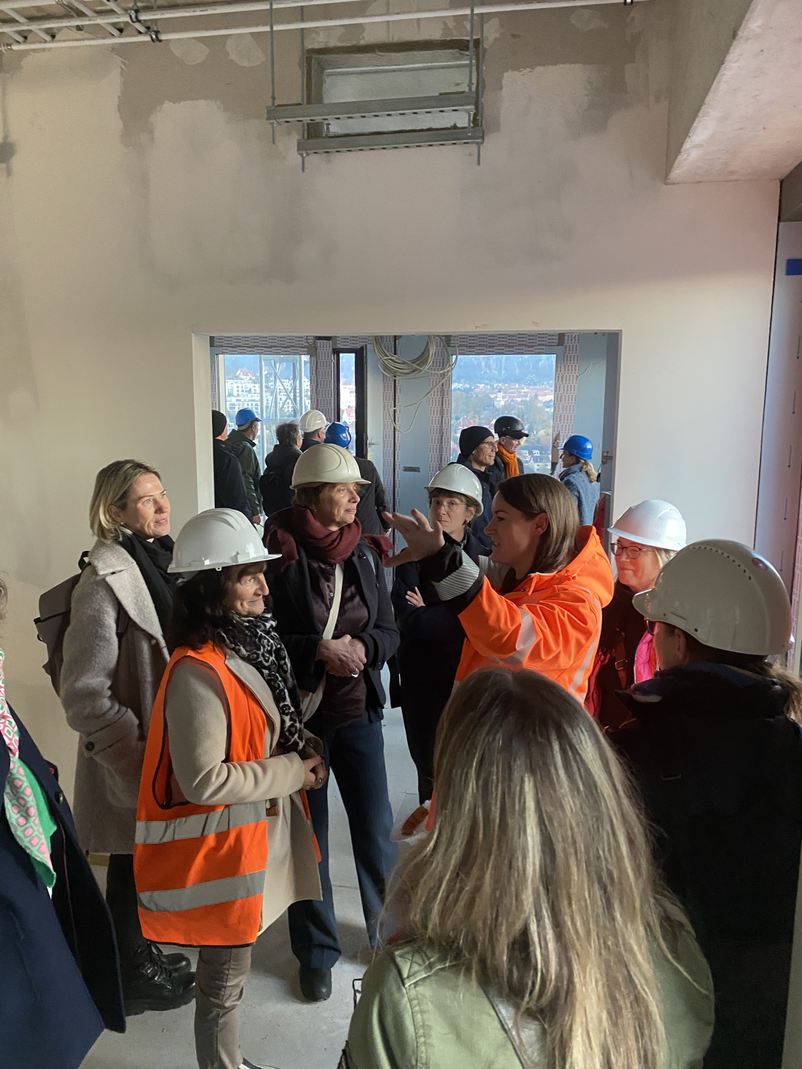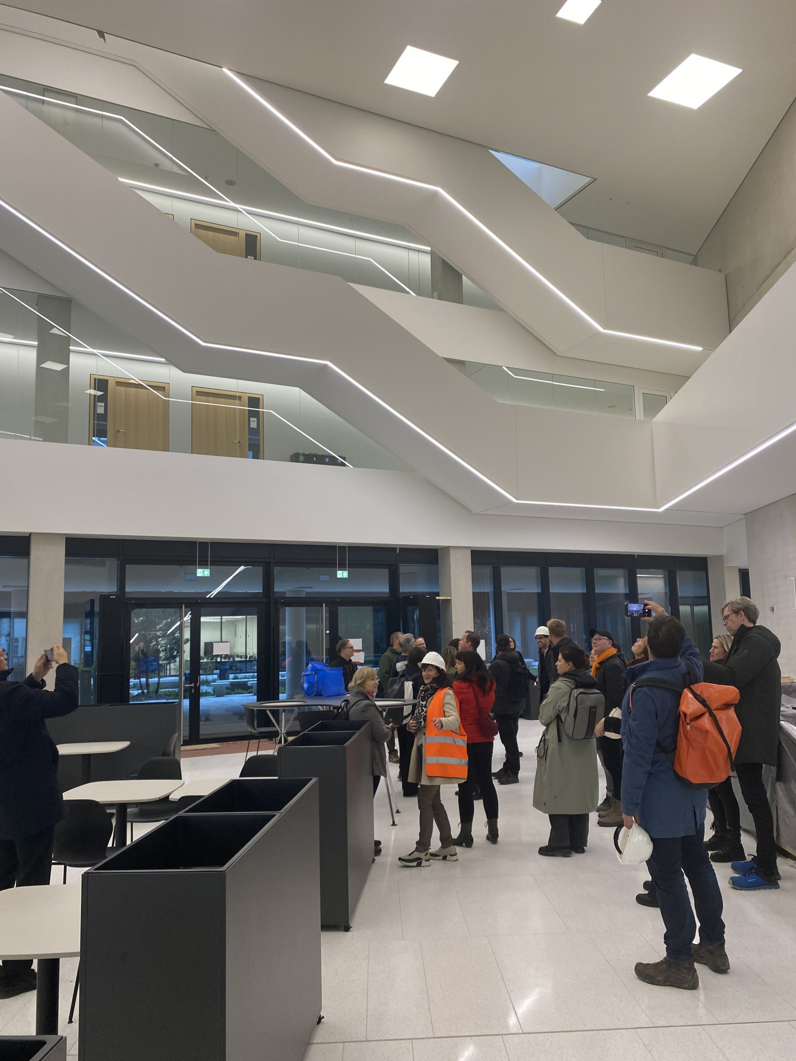 Ein besonderes Highlight war die anschließende Baustellenführung auf dem Campus Inselplatz der Friedrich-Schiller-Universität (FSU) Jena. Unter fachkundiger Leitung durch Mitarbeitende des TLBV und Bauverantwortliche der FSU konnte eines der derzeit bedeutendsten Hochschulbauprojekte Thüringens besichtigt werden – geplant von CODE UNIQUE Architekten BDA mit QUERFELDEINS, Dresden.