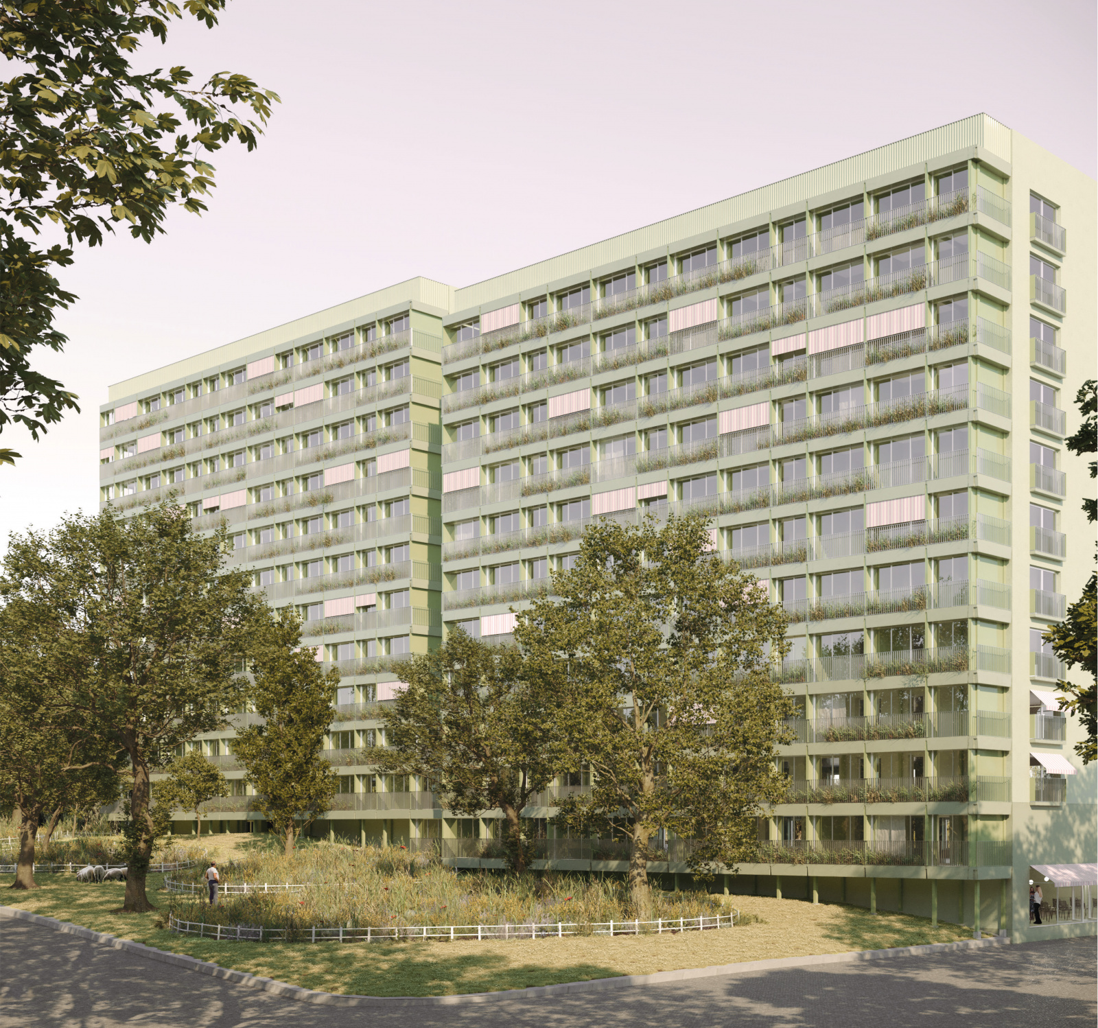 Nach einer sechswöchigen Überarbeitungsphase und einer finalen Präsentation fiel die Entscheidung der KoWo zugunsten des Entwurfs von VITAMINOFFICE ARCHITEKTEN BDA und plandrei Landschaftsarchitektur. Ausschlaggebend waren die überzeugende Umsetzung des Raumprogramms sowie die integrativen Bausteine für die Transformation, darunter die Fuge und der Ergänzungsneubau, die Erschließungszone und die Gestaltung der Balkone. Die besonders positiv bewerteten Freianlagen, die ein hohes Potenzial für soziale Interaktionen bieten, trugen maßgeblich zur Entscheidung bei.
