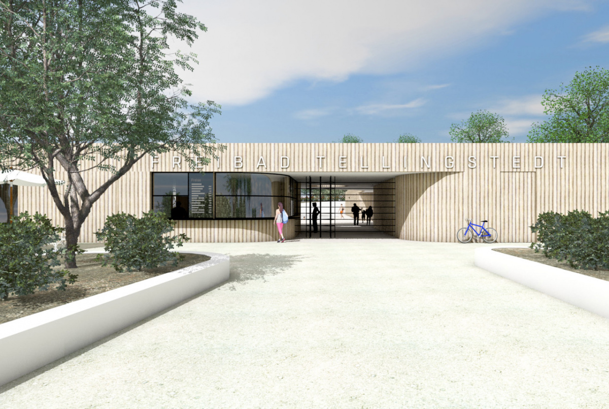 Für den Neubau eines zukunftsfähigen Freizeit- und Schulsportbades lobte die Gemeinde Tellingstedt, westlich von Kiel gelegen, einen offenen zweiphasigen Realisierungswettbewerb aus. Ziel war es, den besten Lösungsvorschlag zu erhalten, der den unterschiedlichen Anforderungen, insbesondere der Gestaltung, Funktionalität, Wirtschaftlichkeit in Bau und Betrieb, Nachhaltigkeit und Umwelt, in abgestimmter Form gerecht wird.