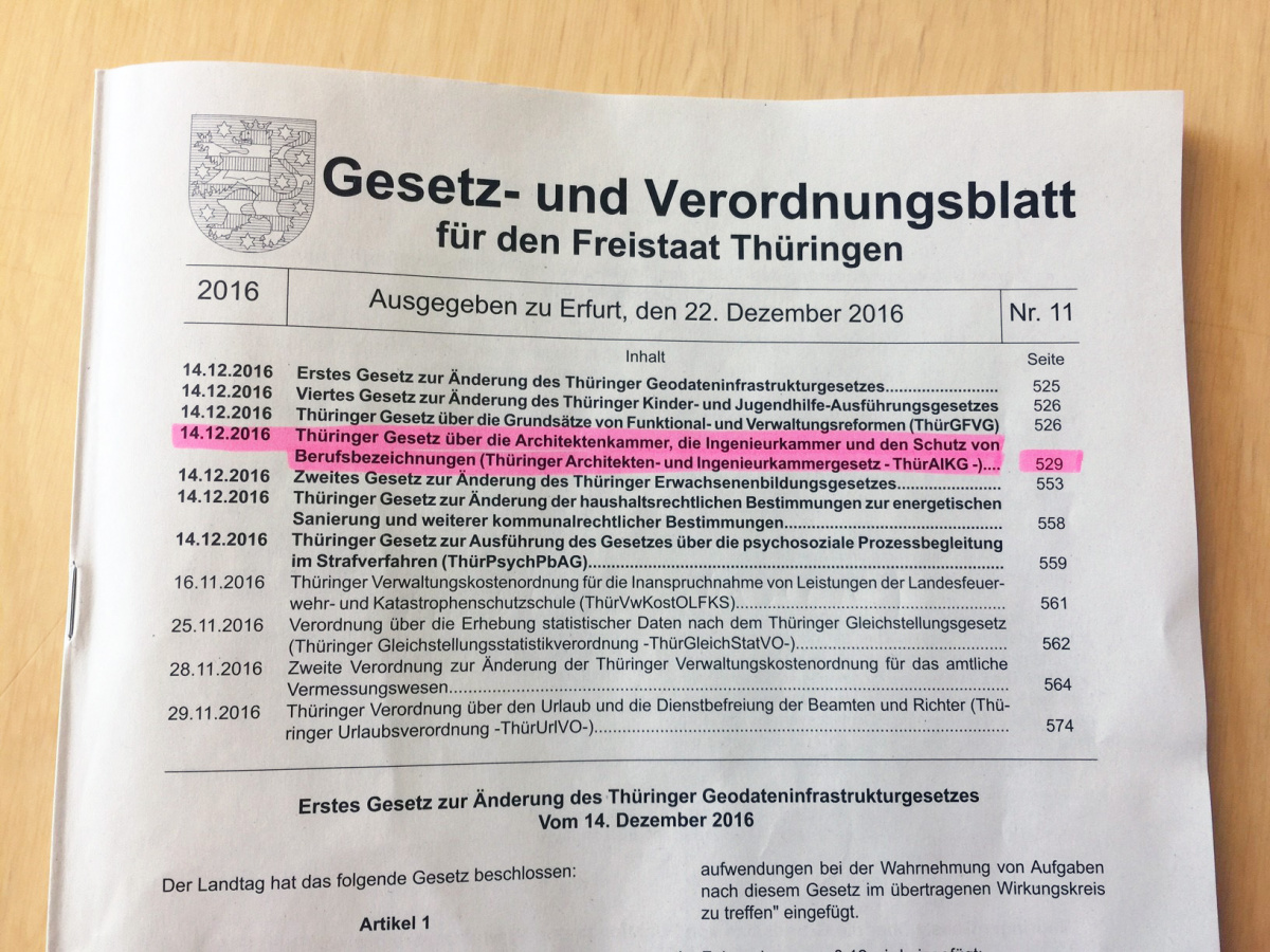 Neues Thüringer Architekten- und Ingenieurkammergesetz (ThürAIKG)