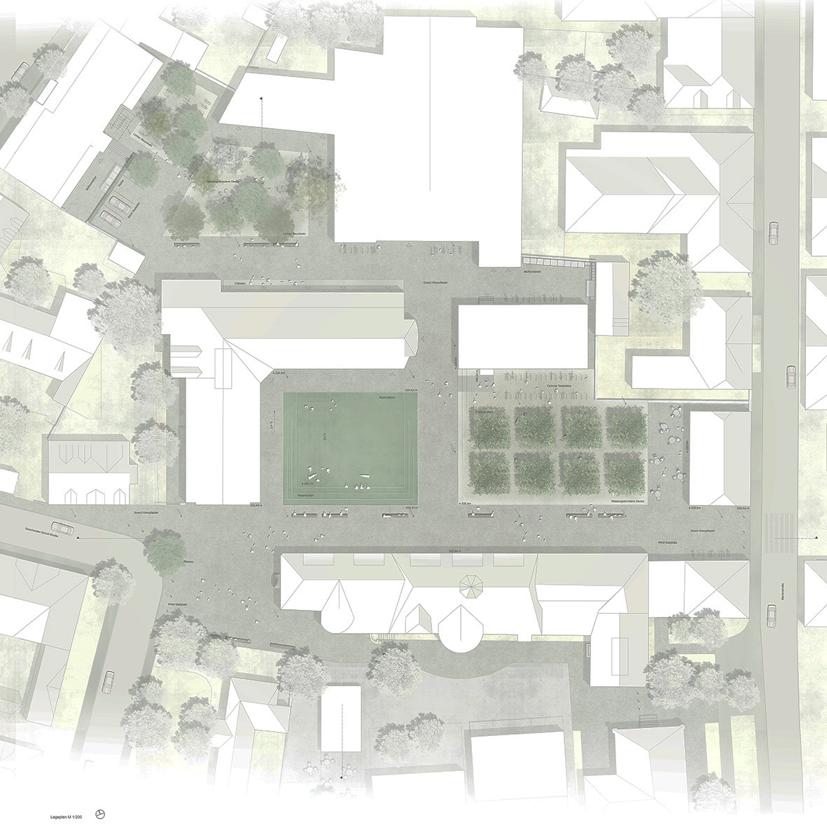 "Der Entwurf ist ein klarer und kraftvoller Versuch mit der Vergangenheit umzugehen. Gleichzeitig wird die gegenwärtige und zukünftige Funktionalität berücksichtigt. Die Gestaltung lässt die Kunstschule und die Kunstgewerbeschule gebührend zur Geltung kommen. Die Geschwister-Scholl-Straße wird in ihrer originären Form erhalten und durch das verwendete Material ruhig und zugleich funktional gestaltet. Kritisch ist die Anordnung des Behindertenparkplatzes an der Marienstraße. Die Fläche vor der Kunstgewerbeschule wird als eine waagerechte, zur Kunstschule abgesenkte, Campuswiese strukturiert. Das großzügige Bankelement dient als Erinnerung an die Einfassung des Van-de-Velde-Gartens. Durch die Pflanzung weißer Frühjahrsblüher sollen die ehemaligen Gartenwege nachgebildet werden. Die sogenannte „Tree-Bühne“, d.h. die Fläche zwischen Hauptgebäude und Campus Office, westlich der Marienstraße 18, wird positiv beurteilt. Mindestens die vorhandene Linde sollte in ihrer derzeitigen Form jedoch erhalten werden. Art und Höhe der Kronenansätze der neu zu pflanzenden Bäume ist zu überdenken. Die Sitztribüne an der Nordseite der so gennannten „Tree-Bühne“ bietet eine gut gewählte Sitz- und Aufenthaltsmöglichkeit. Die Nähe des Baumhains zum Gebäude Marienstraße 18 wird kritisch gesehen. Ebenso der Rückbau der vorhandenen Mauer. Der reduzierte Einsatz von Oberflächenmaterialien erscheint gelungen. An der Rückseite des Van-de-Velde-Gebäudes wird eine stärkere Verbindung zwischen Werkstätten und Freiräumen angestrebt. Die Hofflächen werden einfach und multifunktional gestaltet, so dass die Bereiche durch die Studenten auf verschiedenste Arten genutzt werden können. Die Pflanzung eines Kiefernhains hinter der Amalienstraße 13 ist plausibel. Die vorgeschlagene Gestaltung der Fläche am Giebelende des Hauptgebäudes (Ideenteil) erscheint angemessen. Die Reaktion auf die Giebelseiten beider Gebäude ist ausreichend. Der Raum bietet einen Orientierungsort für Touristen und Besucher und stärkt gleichzeitig die bauliche Gebäudefassung. Das Raumkonzept ist jedoch noch nicht ausgereift. Bei Erhalt der am Hauptgebäude befindlichen Platane besteht weiterhin eine unklare Baumsituation. Die empfohlenen Oberflächenmaterialien sind robust und relativ wartungsarm. Sie sind für die Gestaltung einer Campus-Freifläche angemessen. Das vorgeschlagene Beleuchtungskonzept respektiert den historischen Kontext und unterstützt die derzeitige und zukünftige Nutzung."