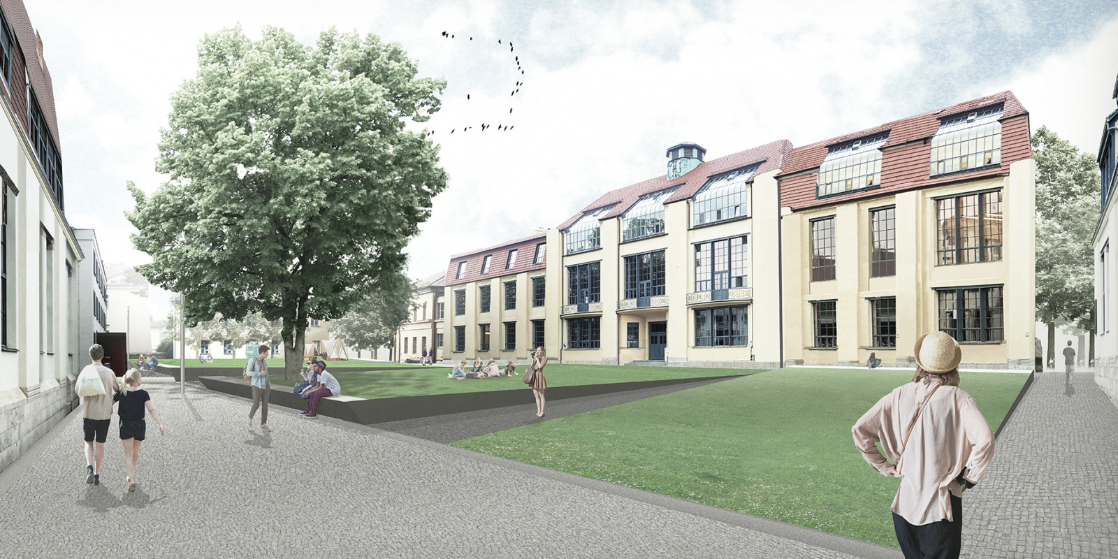 Damit die anstehende Neugestaltung der Außenanlagen den Nutzungsansprüchen der Bauhaus-Universität Weimar gewachsen ist und in ihrer Gestaltqualität den bedeutenden Werken van de Veldes gerecht wird, lobte der Freistaat Thüringen diesen europaweit offenen Ideen- und Realisierungswettbewerb aus. Es war ein Konzept zu entwickeln, welches die spezifische Atmosphäre der Umgebung aufnimmt und langfristig sichert.
