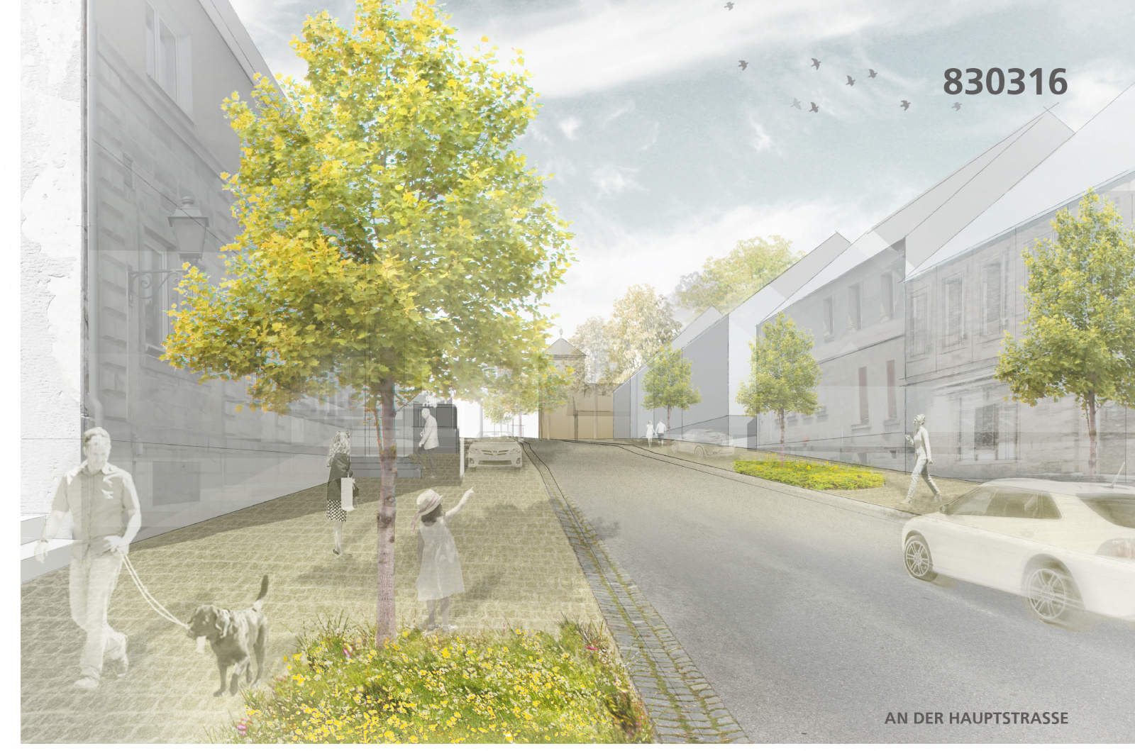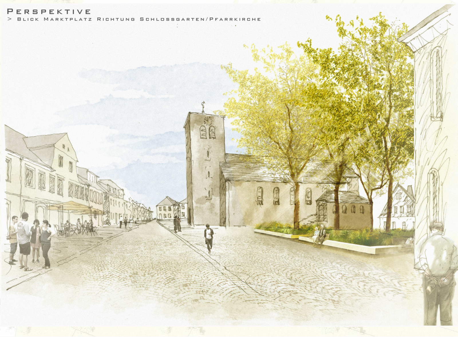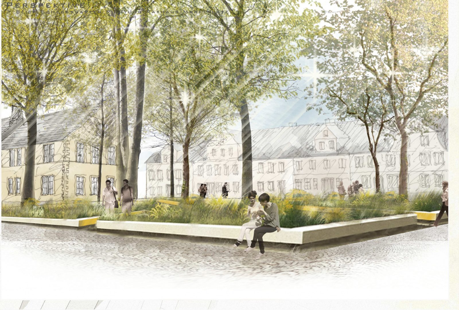 „Die Arbeit interpretiert das gewachsene Gefüge der Teuschnitzer Innenstadt neu und versucht durch den Bezug zur Geschichte einen eigenständigen Beitrag zu entwickeln. Auftakt zum Marktplatz bildet die umgestaltete Hauptstraße. Die Gehwege werden durch einen neuen Belag aus gesägtem Granitsteinpflaster neu gestaltet. Die gewünschte Barrierefreiheit wurde umgesetzt. Der Erhalt des Baumbestandes wird positiv bewertet. Der Markplatz wird als klar ausformulierte Fläche ausgearbeitet. Das Bestandspflaster wird in die Gestaltung integriert und die Randbereiche durch barrierefreie Laufbänder aus gesägtem Granitpflaster ergänzt. Das vorgeschlagene Wasserspiel wird als Bereicherung des Platzes empfunden und positiv bewertet. Im Zusammenspiel mit dem vorgeschlagenen Beleuchtungskonzept entsteht ein feiner Übergang zur benachbarten Schlossterrasse.“