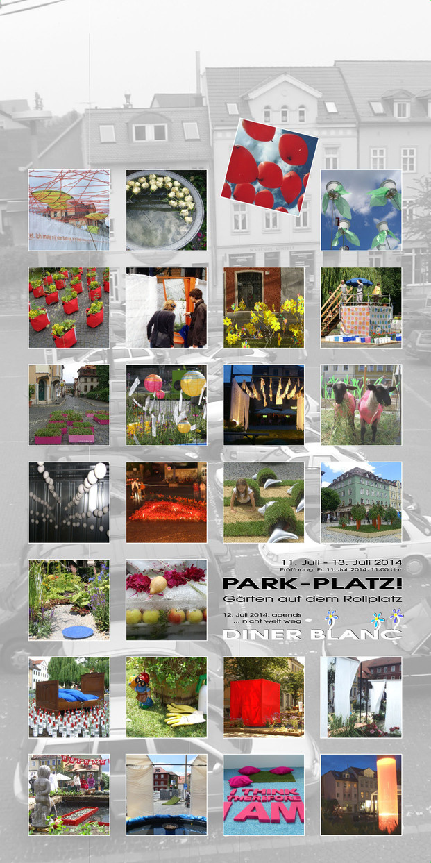 Dieses Jahr verwandelt sich der Rollplatz zum sechsten Mal von einem Parkplatz in einen bunten „PARK- PLATZ“. Unter dem Motto: „Was ihr wollt“ werden mehr als 20 Landschaftsarchitekten erneut beweisen, dass man mit Witz und Fantasie auch auf kleinstem Raum einen tollen Garten zaubern kann. Die Beteiligten planen und realisieren die 5.00 x 5.00 m großen Installationen in Eigenregie, erhalten aber Unterstützung von der Stadt Weimar und von Sponsoren.