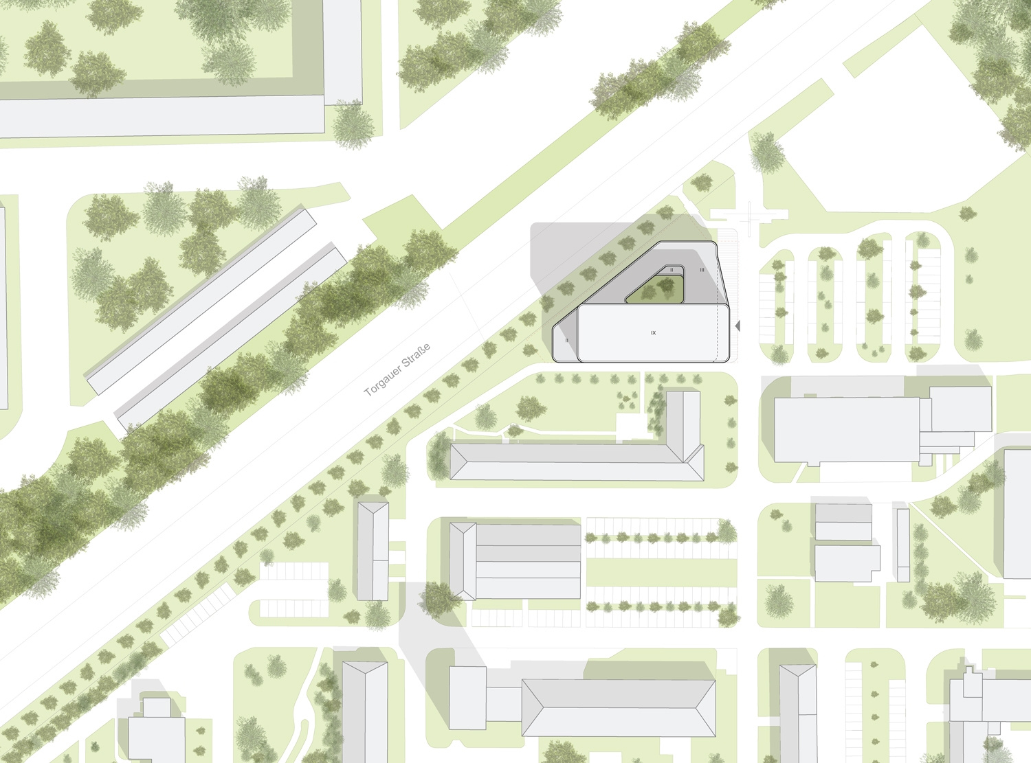 Entsprechend dem in Abstimmung befindlichen Raumbedarfsplan soll eine Nutzfläche von insgesamt circa 4 600 Quadratmeter realisiert werden. Insgesamt werden Räumlichkeiten für circa 170 Arbeitsplätze errichtet. Der Auslober hatte im Vorfeld eine Machbarkeitsstudie mit der Stadt Leipzig erstellt. Diese sieht vor, auf dem Wettbewerbsgrundstück ein Hochhaus mit einer Traufhöhe von bis zu circa 35 Meter zu realisieren, um trotz der geringen Grundstücksgröße den Flächenbedarf decken zu können.