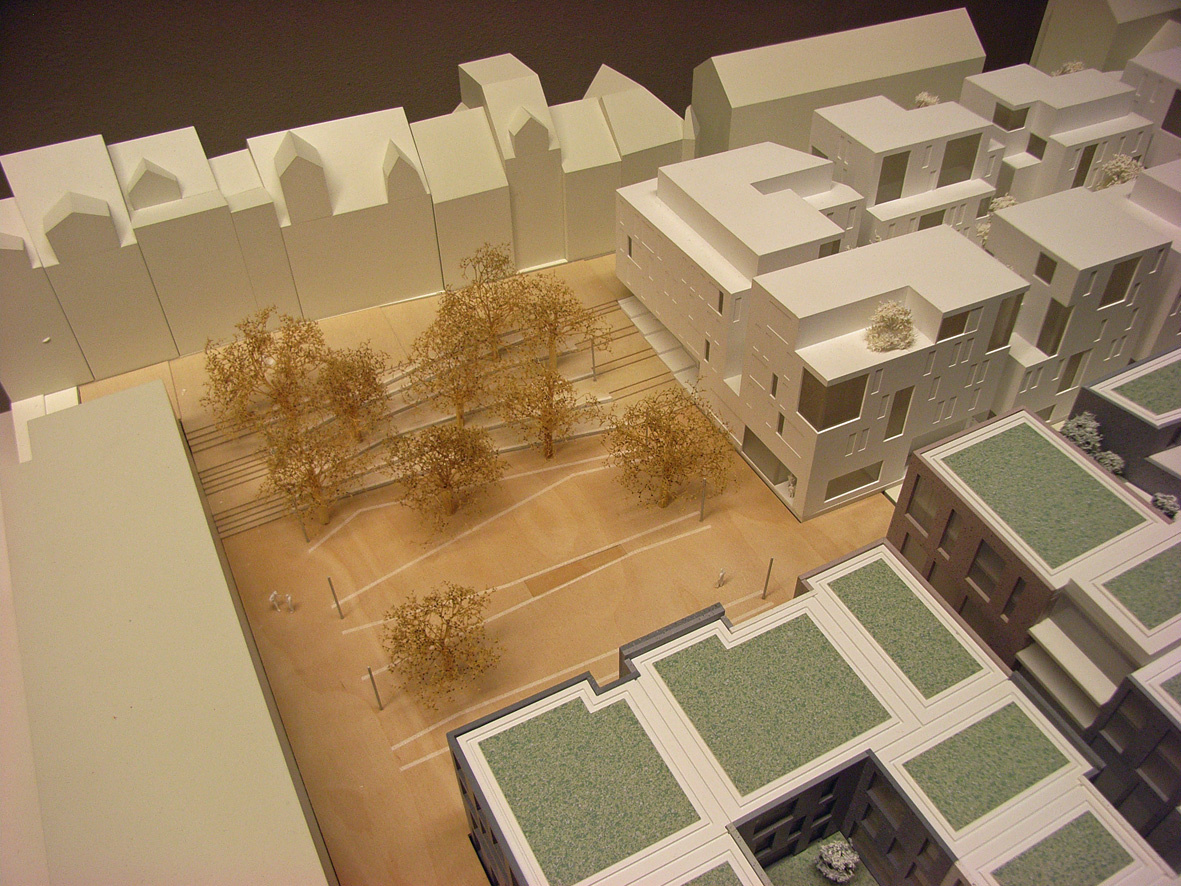 Aus der Beurteilung des Preisgerichts: Der Freiraumentwurf mit seinen zehn Eichen ist ein selbstbewusster und überzeugender Beitrag für einen öffentlichen Ort im Stadtgefüge Jenas. Sowohl in den Übergängen zu den angrenzenden Straßen wie auch in der Verbindung mit der Johannisstraße besitzt der Platz eine große räumliche Selbstverständlichkeit und einen deutlichen eigenständigen Charakter. Es werden Sichtbeziehungen berücksichtigt, die von allen Seiten den Platz als Gesamtanlage visuell erfahrbar machen. Die durch helle Sitzstufen gegliederte Treppenanlage, die in eine Platzfläche mit hellen Bändern übergeht, schafft einen optischen Zusammenhalt, der wie ein Teppich das Höhenniveau überwindet. Alle Funktionsteile wie Rampen, Wasserspiel, Sitzstufen werden in dieses Bild integriert. Im Zusammenspiel mit dem transparenten Eichenhain, der jede optische Barriere vermeidet, entsteht eine ruhige, spezifische und gleichzeitig urbane Atmosphäre, die vielen Funktionen und Bevölkerungsgruppen Raum gibt.