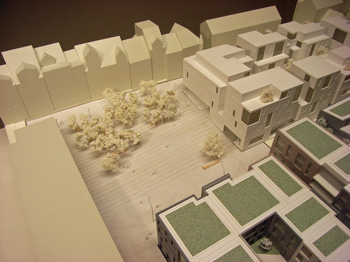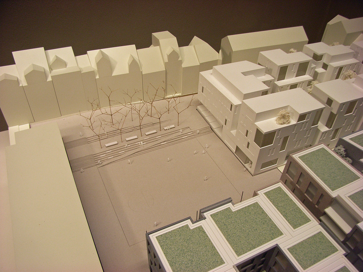 Aus der Beurteilung des Preisgerichts: Die Qualität des Entwurfes liegt in der so selbstverständlich anmutenden Überwindung der Geländehöhen zwischen Johannisstraße und Leutrastraße, wobei die Anschlussprobleme des Gefälleplatzes an die alte und neue Bebauung später zu klären sein werden und nicht ganz einfach sind.