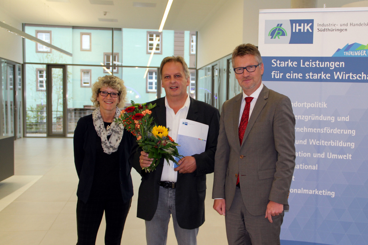 Am 6. Oktober wurde Architekt Dietrich Heuberger aus Oberschönau in Suhl durch Dr. Ralf Pieterwas, Hauptgeschäftsführer der IHK Südthüringen, für das Sachgebiet „Schäden an Gebäuden“ öffentlich bestellt und vereidigt. Im Namen der Architektenkammer Thüringen gratulierte Konstanze Schulze, zuständig für das Eintragungswesen.