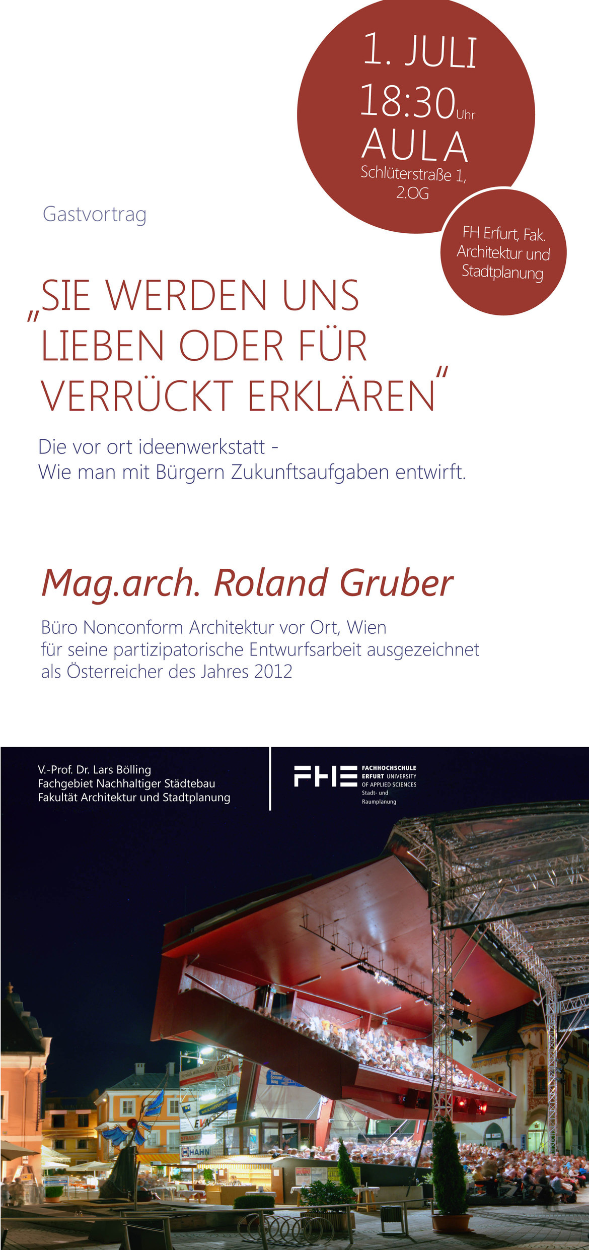 Gastvortrag von Mag.arch. Roland Gruber vom Büro Nonconform Architektur vor Ort, Wien, am 1. Juli 2014 um 18:30 Uhr an der FH Erfurt