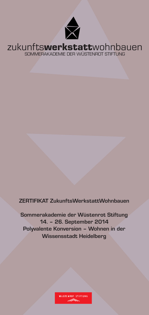 Das Stipendium im Wert von EUR 5.000 beinhaltet die kostenfreie Teilnahme an der Sommerakademie ZukunftsWerkstattWohnbauen der Wüstenrot Stiftung 2014 mit Zertifikat und Unterkunft.
