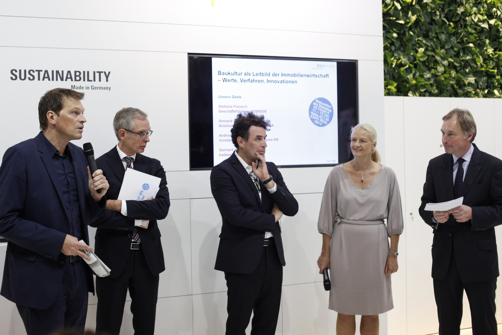 Neben EU-Kommissar Günther Oettinger besuchten unter anderem Staatssekretär Gunther Adler (BMUB) und in Vertretung von Bundesministerin Dr. Barbara Hendricks Ministerialdirektor Günther Hoffmann den Gemeinschaftsstand. Dieser wurde durch die Bundesstiftung Baukultur, das Baukosteninformationszentrum (BKI), die greenbcert GmbH & Co. KG und Goodman Germany unterstützt. Medienpartner war das Deutsche Architektenblatt.