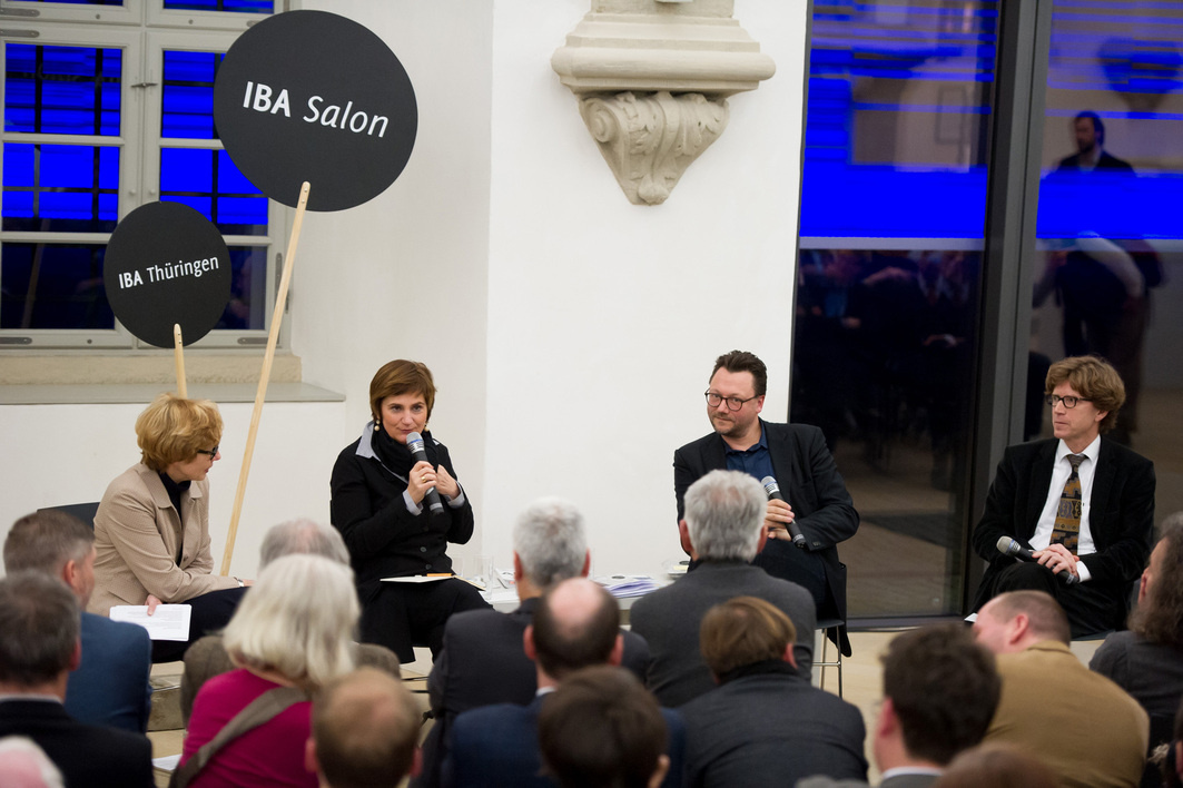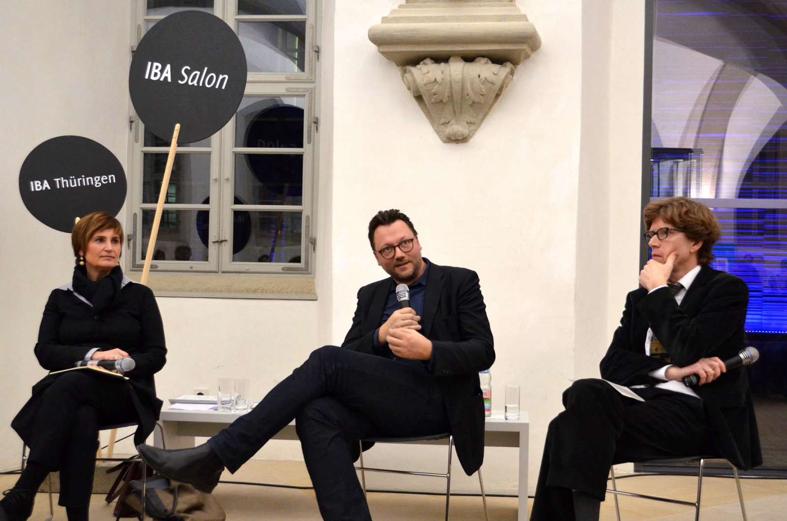 Fragen, denen die Teilnehmer des dritten IBA-Salons am 26. Februar im Angermuseum Erfurt vor rund 150 Gästen nachzugehen versuchten. Eingeladen waren mit Dr. Marta Doehler-Behzadi und Muck Petzet zwei Experten für die Themen Baukultur und Bauen im Bestand.