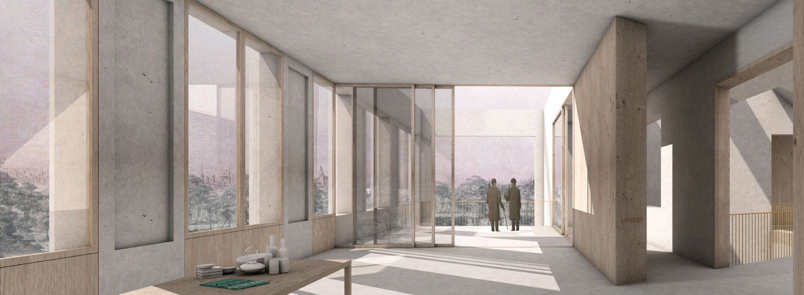 Erklärter Leitgedanke der Arbeit ist die Metapher der Stadt als gebautem Abbild von Weltbeziehungen in der Verzahnung öffentlicher, halböffentlicher und individueller Raumnutzungen. Die Idee wird explizit an der topographischen Struktur eines großzügigen Atriums mit Angeboten für differenzierte (urbane) Kommunikationsmuster. Zwischen dem zentralen Platz der „Stadt“ (Lichthof) und den an der Peripherie angesiedelten Denkzellen trägt eine hierarchische Erschließungsstruktur zur Orientierung bei, die durch häufigere Sichtbezüge zum Außenraum noch unterstützt werden könnte. Die Eingangsgeste und daran anschließende Übergangsräume bieten notwendige Kontaktzonen und adressieren den Forschungsbau mit einer angemessenen Transparenz auf dem Campus.