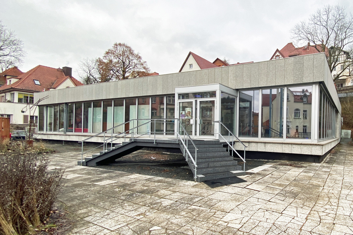 Los geht es mit einer Besichtigung des Kunstpavillons, der ursprünglich als Ausstellungspavillon des Automobilwerks Eisenach diente und heute als Kultur- und Veranstaltungsort genutzt wird.