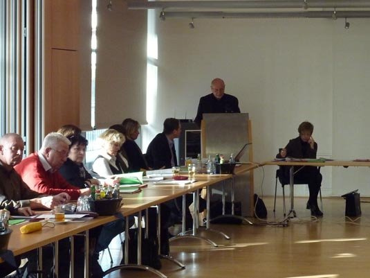 Ein straffes Programm erwartete die Teilnehmer der Vertreterversammlung der Architektenkammer Thüringen (AKT) am 27. November im Comcenter in Erfurt. Neben der Fortbildungssatzung der Mitglieder und der Geschäftsordnung der Geschäftsstelle standen der Haushaltsplan 2010, die Beitragssatzung und die Perspektiven der Stiftung Baukultur zur Diskussion und Abstimmung.