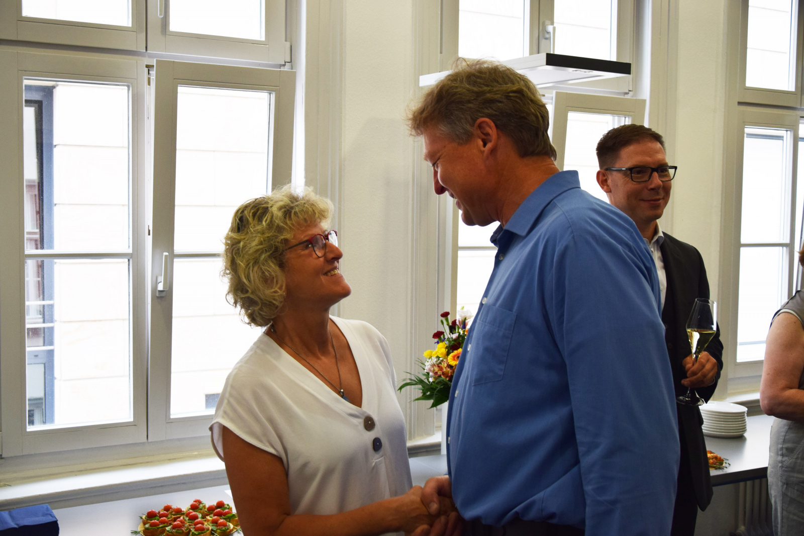 Neben vielen Weggefährten und -gefährtinnen ließen es sich auch Ehrenpräsident Hartmut Strube und der erste Geschäftsführer der Architektenkammer Thüringen Thomas Erfurt nicht nehmen, Konstanze Schulze gebührend zu verabschieden.
