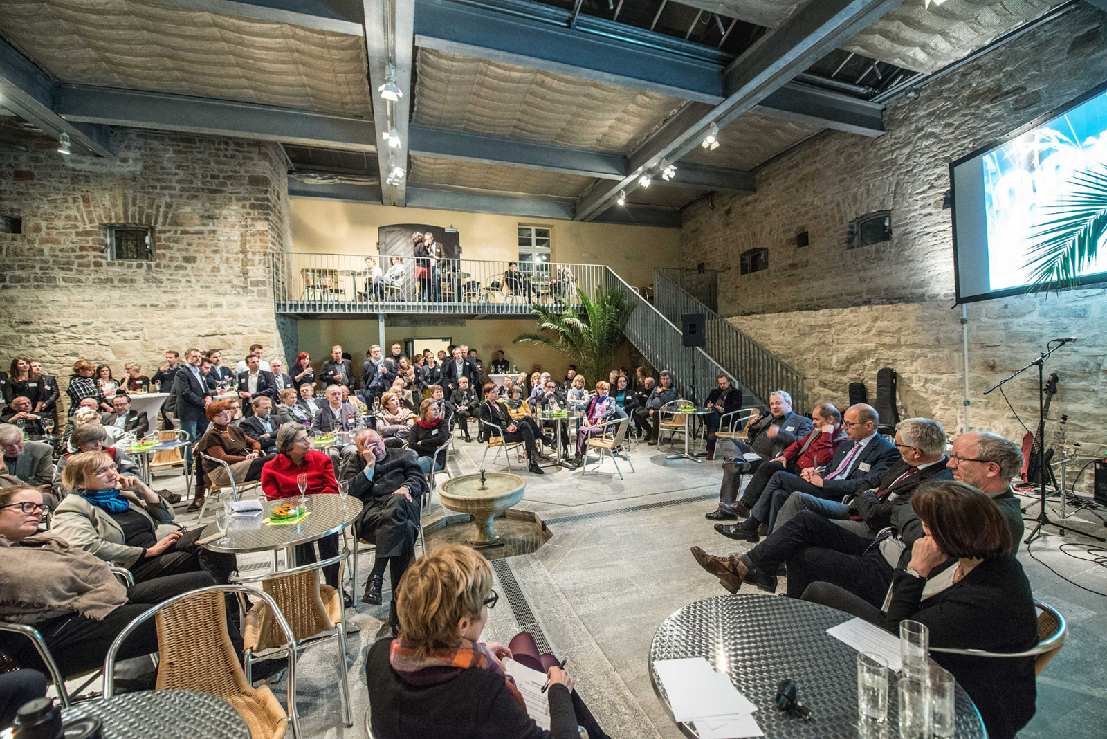 Statt der üblichen Grußworte und Reden setzten die Veranstalter in diesem Jahr auf ein kurzweiliges Podiumsgespräch zum Thema „Grüne Infrastruktur“. Unter der Moderation der ehemaligen Geschäftsführerin der Architektenkammer Thüringen, Gertrudis Peters, sollten Vertreter der beiden für die grünen Verbände zuständigen Ministerien und der Thüringer Landesanstalt für Umwelt und Geologie (TLUG) im Kanonenhof des Deutschen Gartenbaumuseums berichten, was für einen Wert und welche Wertschätzung die Investitionen in grüne Infrastruktur im Freistaat Thüringen haben. Das Thema sei derzeit bundes- und EU-weit in aller Munde und vor allem der funktionale Mehrwert werde immer mehr in den Vordergrund gerückt, so Peters. Ein Stichwort sei unter anderem die Resilienzförderung.