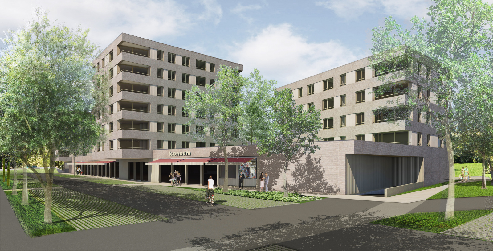 Die Konsumgenossenschaft Weimar eG plant einen Neubau im Wohngebiet Weimar-Nord mit Ladennutzung im Erdgeschoss und Wohnnutzung in den Obergeschossen.