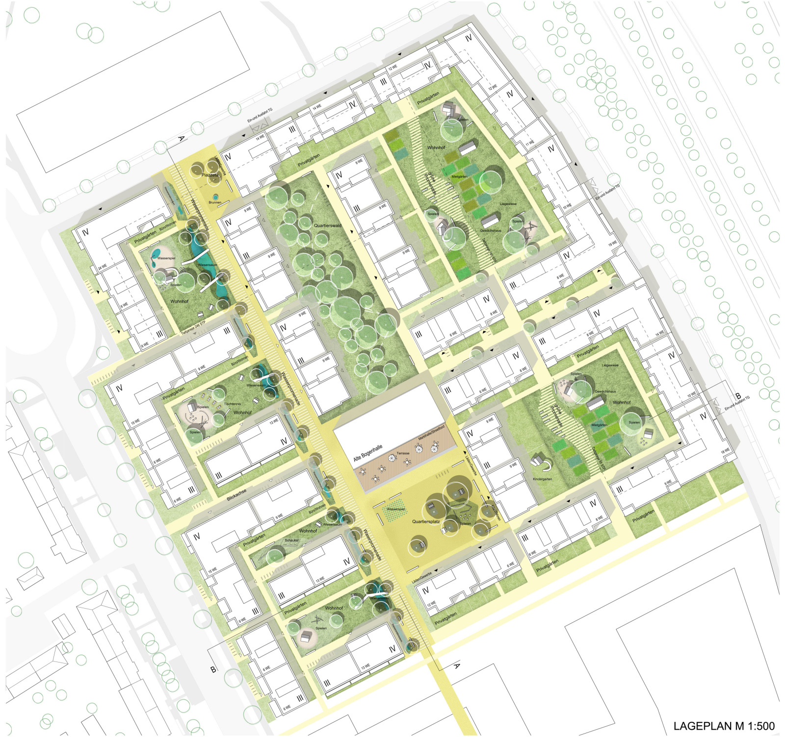 Mit dem nichtoffenen Wettbewerb sollten für vier Teilbereiche (A–D) des Quartiers optimale Gebäudetypologien und Grundrisslösungen sowie ein zusammenhängendes Freiraumkonzept gefunden werden, die eine qualitätsvolle Wohnnutzung des immissionsbelasteten Standorts ermöglichen.
