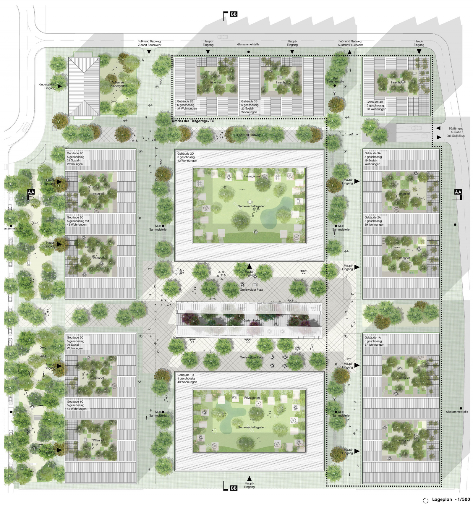 Gegenstand des Wettbewerbs waren Entwürfe für Gebäude und Freianlagen für ein neues Wohnquartier mit Wohnraumangeboten im Bereich des mehrgeschossigen Wohnungsbaues für alle Generationen.