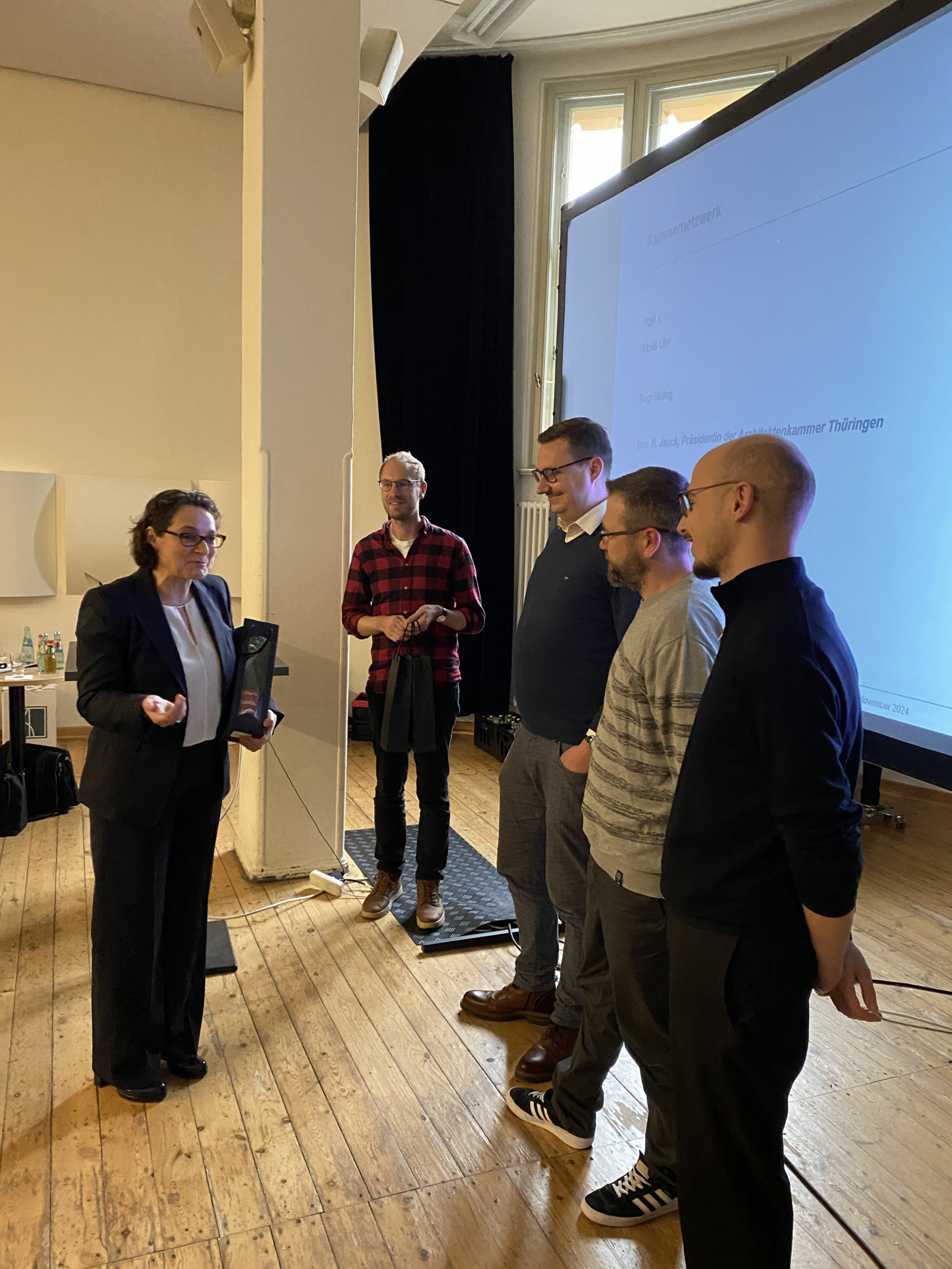 Am Nachmittag des 29. Novembers 2024 waren alle Mitglieder zum „Kammernetzwerk“ in das Theater Gera eingeladen. Nach einer herzlichen Begrüßung der neuen Kammermitglieder durch Präsidentin Ines M. Jauck und Matthias Malicki von der AG Junge Planende bot ein Rundgang durch das Theater, geführt von Architekt Thomas Laubert sowie von Theater-Mitarbeiter Yasin Baig, spannende Einblicke.