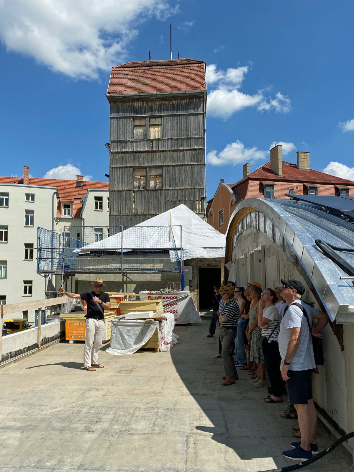 Wie Theorie und Praxis zusammenfinden, zeigte die Baustellenbesichtigung im historischen Wittumspalais. Sie ergänzte die laufende Vortragsreihe „Horizonte“ und bot Studierenden wie Planenden die Gelegenheit, direkt vor Ort über Herausforderungen und Lösungen im denkmalgerechten Bauen zu diskutieren. Organisiert wurde das Format vom Horizonte-Team der Bauhaus-Universität Weimar in Kooperation mit der AG Junge Planende der Architektenkammer Thüringen – ein gelungenes Beispiel für Vernetzung, Wissenstransfer und praxisnahen Austausch.