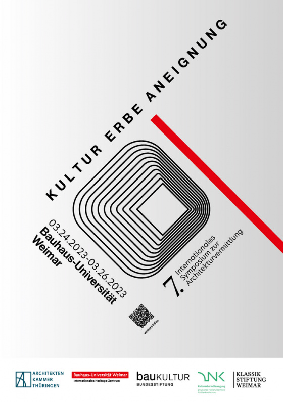 vom 24. bis zum 26. März 2023 lädt die Bauhaus-Universität Weimar in Kooperation mit der Architektenkammer Thüringen, der Bundesstiftung Baukultur, dem Deutschen Nationalkomitee für Denkmalschutz und dem ThILLM zum 7. Internationalen Symposium zur Architekturvermittlung nach Weimar ein.