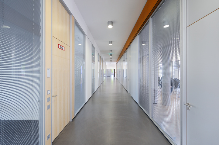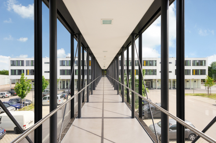 Die Erweiterung des Objektes „DasKinderMedienZentrum, Erfurt“ dient einer standortbezogenen Weiterentwicklung von kleinen und mittleren Unternehmen der Kindermedienbranche sowie integrierter Bildungs- und Forschungseinrichtungen des Fraunhofer Instituts für Digitale Medientechnologie. Der 4-geschossige Erweiterungsneubau (3 Obergeschosse, 1 Untergeschoss) ist mit dem bestehenden Gebäude im 1. OG durch eine transparente Brücke verbunden. Damit wird eine witterungsunabhängige Erreichbarkeit der Produktionsräume im Bestandsgebäude aus den im Erweiterungsneubau befindlichen Büros, Laboren und Werkstätten sichergestellt. Der komplett unterbaute Hof ist als begrünter Innenhof ausgeführt. Terrassen, Bäume, Sträucher und sonstige Pflanzungen ermöglichen eine hohe Aufenthaltsqualität. Das neue Gebäude ist so konzipiert, dass sich ein weiterer Bauabschnitt zu einem späteren Zeitpunkt anschließen lässt.